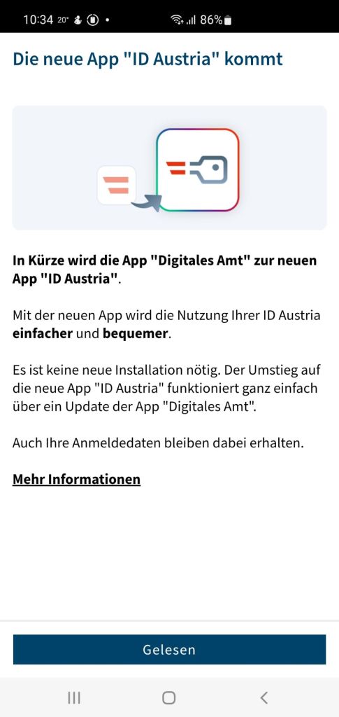 Warum das nur auf Ansuchen umständlich in einer extra App geschieht, bei der man sich gesondert anmelden muss, erschließt sich aber weder dem Durchschnittsbenutzer noch den IT-Menschen. Steht zu hoffen, dass das alles ein integriertes Service der neuen „ID Austria“ sein wird.