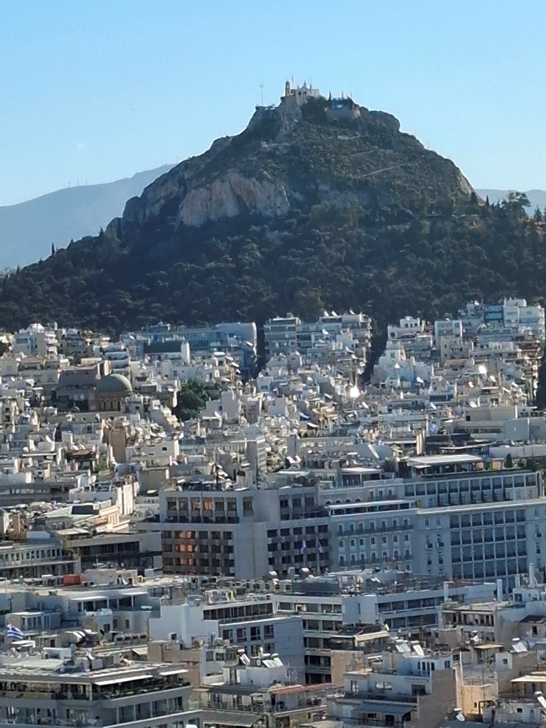 Uns ist dieser Berg bereits von der Akropolis aus aufgefallen, mit einer markanten Kirche ganz auf der Spitze. Und so beschlossen wir, auch diesen zu besuchen. Es gibt zwei Möglichkeiten hinaufzukommen: zu Fuß über einen Weg mit vielen Stufen, die an den erst vor kurzem von uns besuchten Grazer Schlossberg erinnern, oder mit der Standseilbahn.