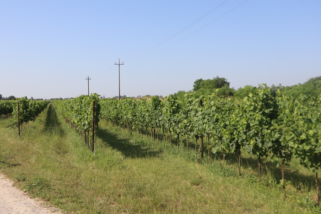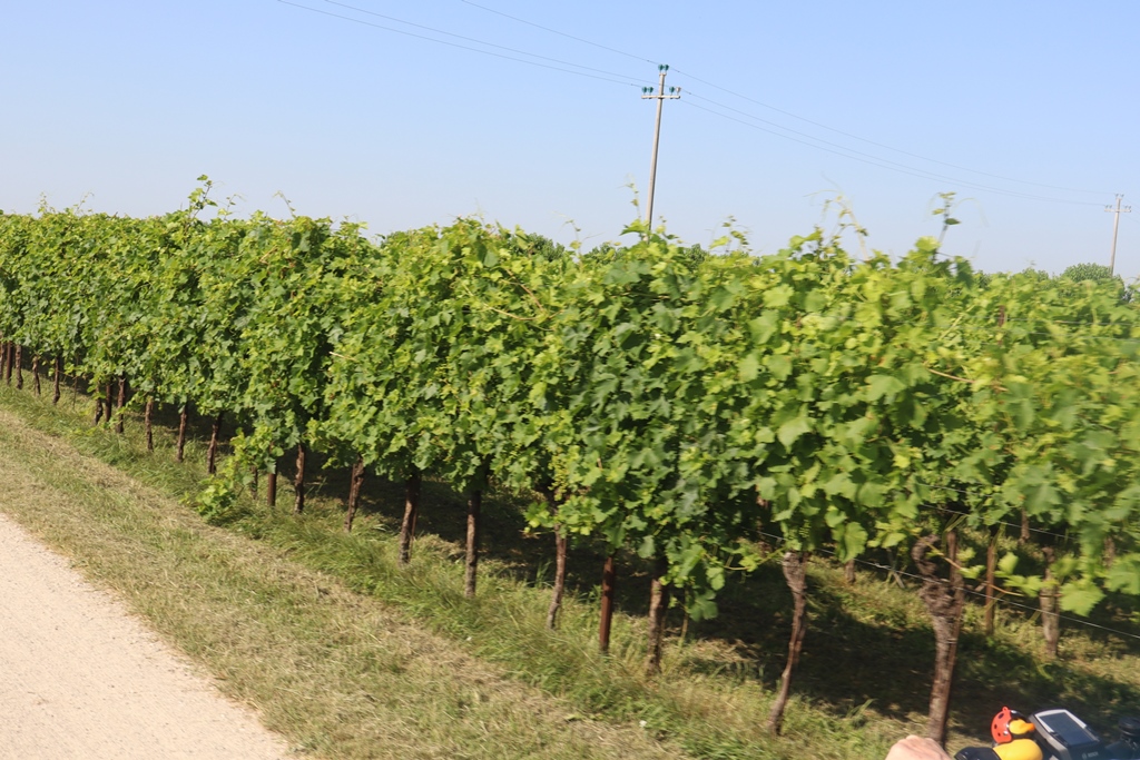 Dann ging es neben der Straße und dann auf einem Feldweg bis zu einer kleinen Unterführung der Autobahn A4, der Autostrada Serenissima von Venedig nach Triest. Ab hier führt der Radweg bald wieder über die Felder und Weinrieden bis Cervignano del Friuli.