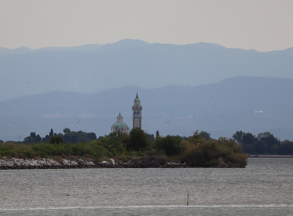 Am Samstag wollten wir noch die Insel Barbana mit der berühmten Wallfahrtskirche Beata Vergine Maria besuchen. Auch einige Wallfahrergruppen nahmen das erste Fähreboot und so fuhren wir begleitet von Rosenkranzgebeten zur Insel.