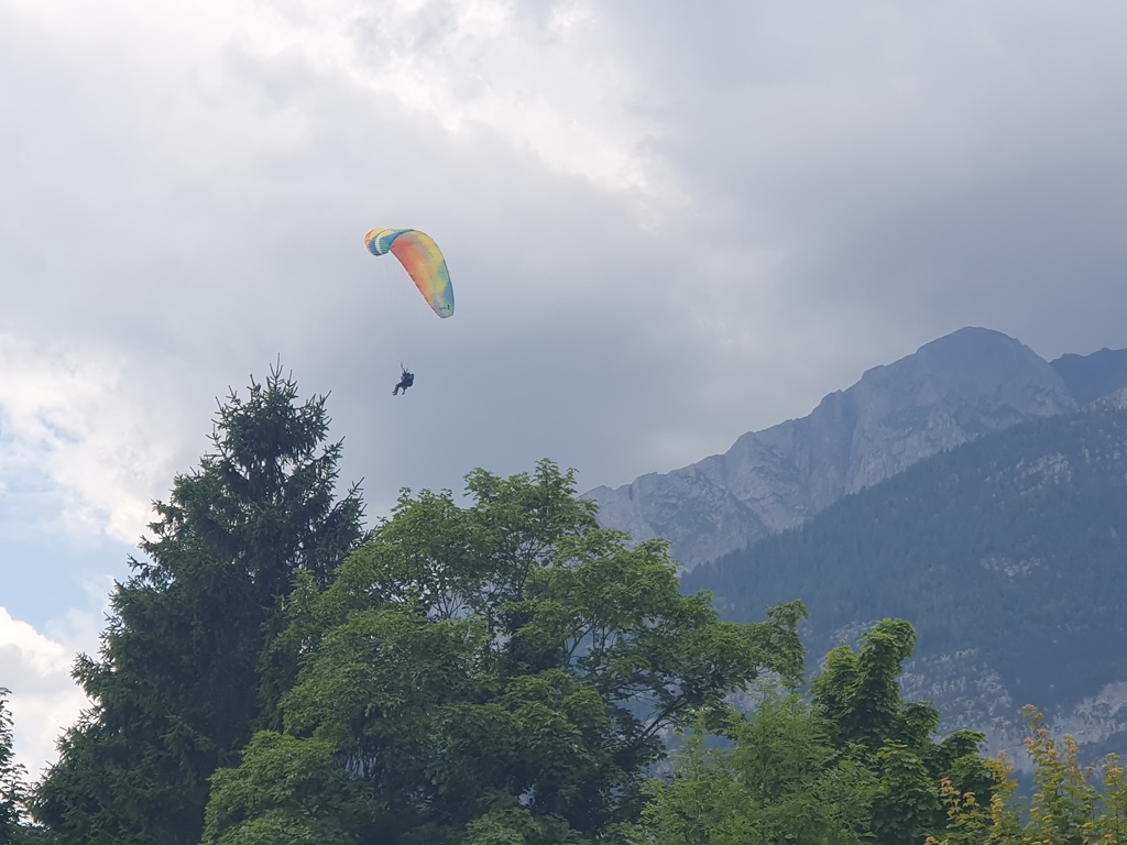 Ich marschierte zuerst ein Stück die Uferpromenade entlang, wo viele die Sonnenstrahlen auf der Liegewiese genossen. Wie immer war auch hier wieder meine Zeit zu knapp dafür. Eventuell sollte ich mir die doppelte Zeit gönnen, nachdem ich bei jeder meiner letzten 3 Touren in die Schweiz um einen Tag verlängert habe und mittlerweile bei 5 Tagen in einer Richtung liege? Der Hunger wurde aber auch größer und so ging ich zum Hotel Fontanella, dessen Restaurant mit Seeblick mir beim Googeln ins Auge gestochen war. Ich wurde nicht enttäuscht, die Pasta war gemeinsam mit dem Ausblick ein Gedicht.
