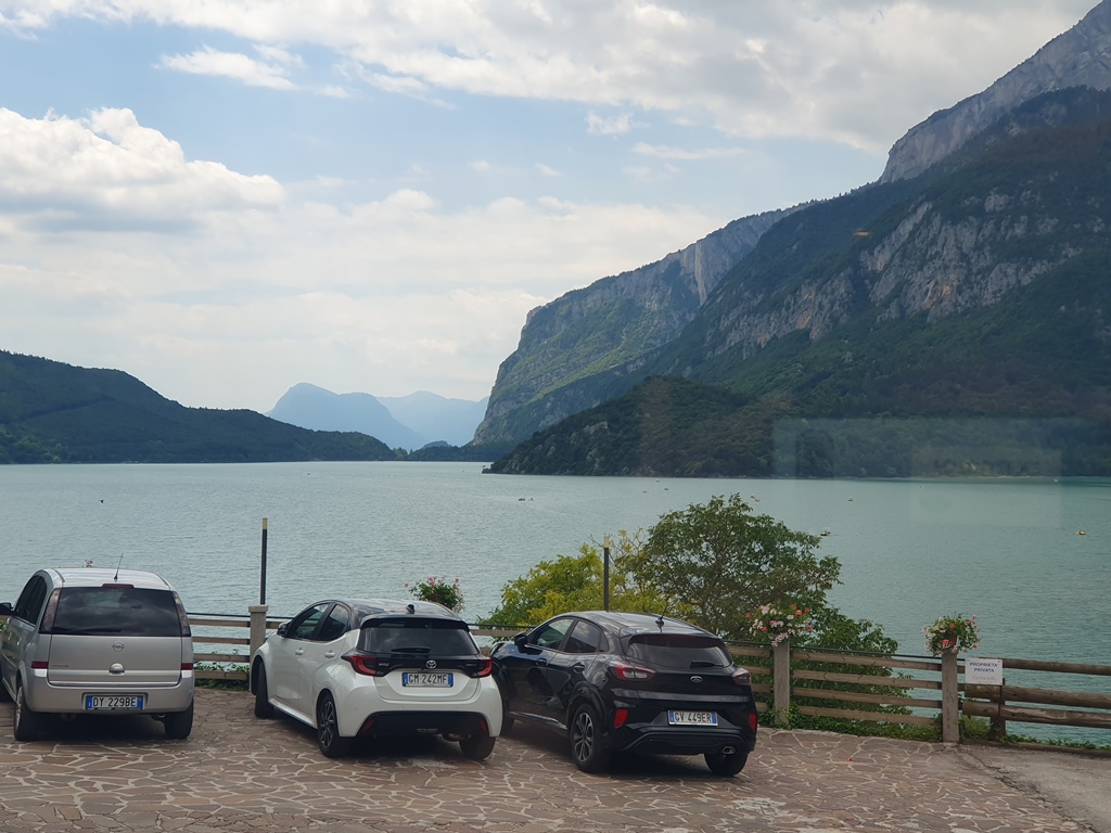 Entlang des Lago di Stramentizzo ging die Fahrt weiter und über den Croce delle Serre Pass hinunter ins Etschtal. In Mezzolombardo hatte ich nicht mehr an den 3740m langen Tunnel Galeria Rupe gedacht und konnte nicht mehr auf die geplante Bergstrecke abbiegen. Meine Navi-Susi geleitete mich aber am Ende sicher um den Tunnel zurück und so kam ich doch noch in den Genuss der empfehlenswert kurvigen SP64 über den Sella di Andalo zum Molvenosee.