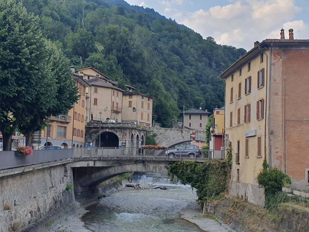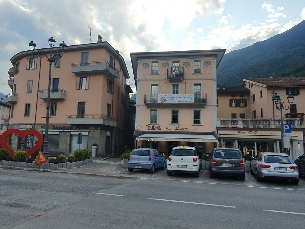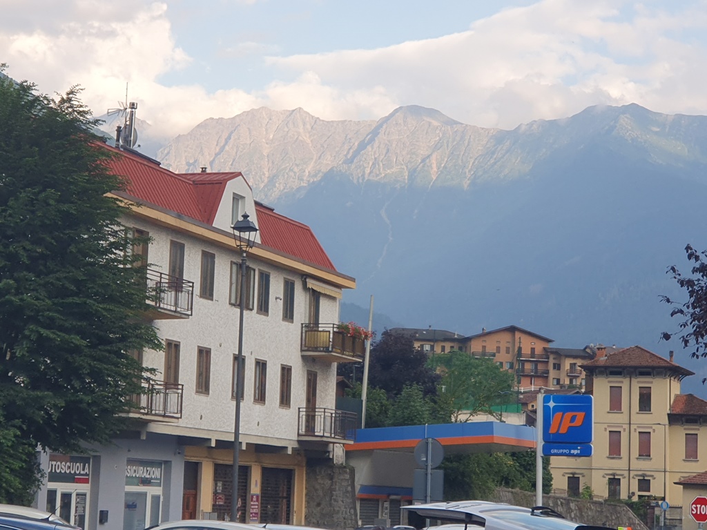 Natürlich macht man am Passo Tonale auch einen Fotostopp, aber dann ging es in schönen Kurven hinunter und nach wenigen Kilometern erreichte ich mein Tagesziel Edolo. Wenn mein erstes Quartier in Fusch eher die Jugendherberge war, entsprach meine Unterkunft hier eher einem Seniorenheim. Aber was solls, das Zimmer war groß und das Bett angenehm, so schlief ich nach mehr als 900 Kilometern am Motorrad und meiner kleinen Stadtrunde mit einer Stärkung in einer kleinen lombardischen Trattoria ziemlich rasch und tief.