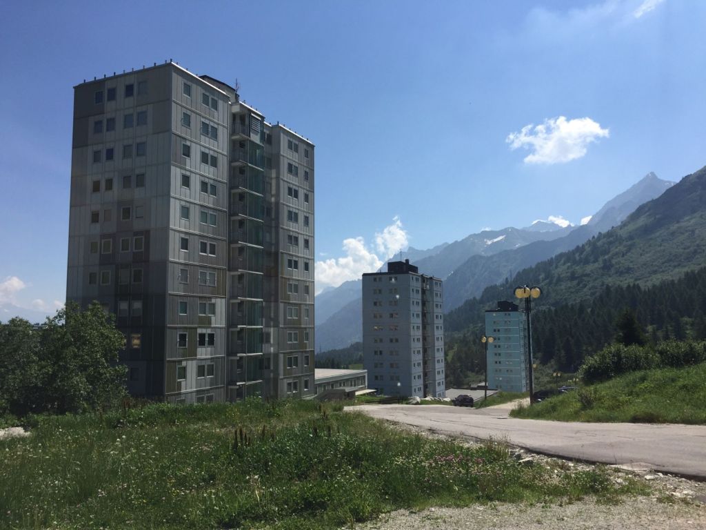 Interessanterweise fielen mir diesmal verschiedene Dinge auf, die ich bei meinen letzten Touren nicht gesehen habe, dabei sind die drei Hochhäuser in Passo Tonale nicht zu übersehen, „die hauen einem das Auge ein“ wie man in Österreich salopp formuliert. Das umstrittene Projekt Torri del Tonale (deut. Tonaletürme) stellte einen drastischen Einschnitt für das Landschaftsbild dar und symbolisiert die zügellose touristische Entwicklung in der Provinz Trient der 1970er Jahre. Von den ursprünglich fünf geplanten Hochhäusern wurden am Ende nur drei gebaut, aber auch das reicht.