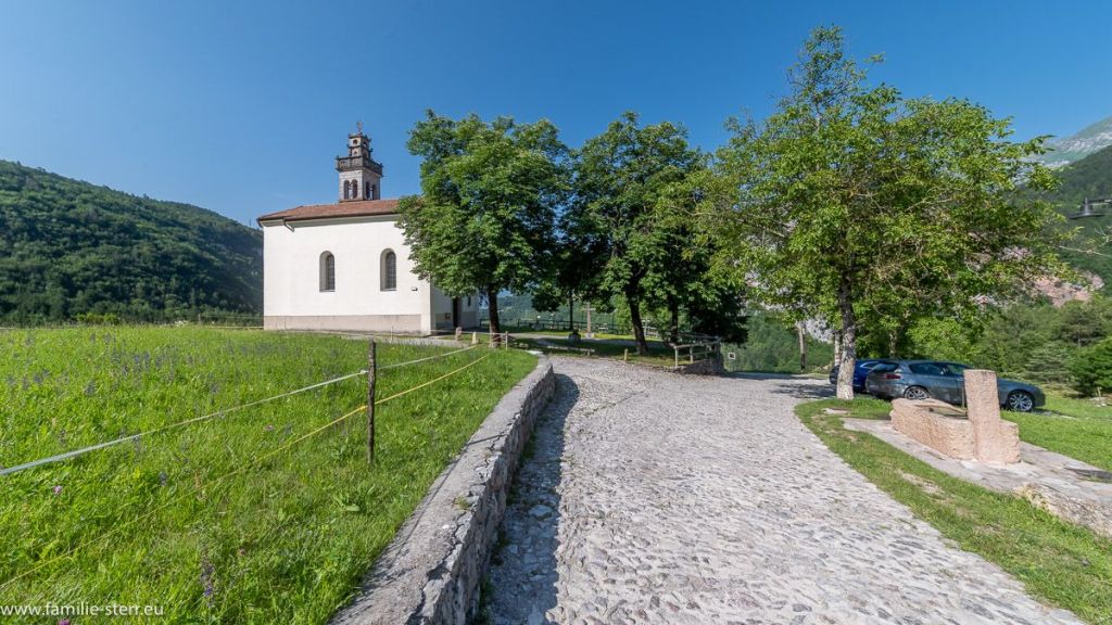 Eine kleine Anmerkung zur Kirche, was ich im Internet dazu gefunden habe: Die Kapelle Santuario Madonna Di Caravaggio ist ein Marienwallfahrtsort und liegt wirklich sehr idyllisch in einer einmalig schönen Umgebung, überall grüne Hügel und in einiger Entfernung dann die felsigen Dolomitengipfel.