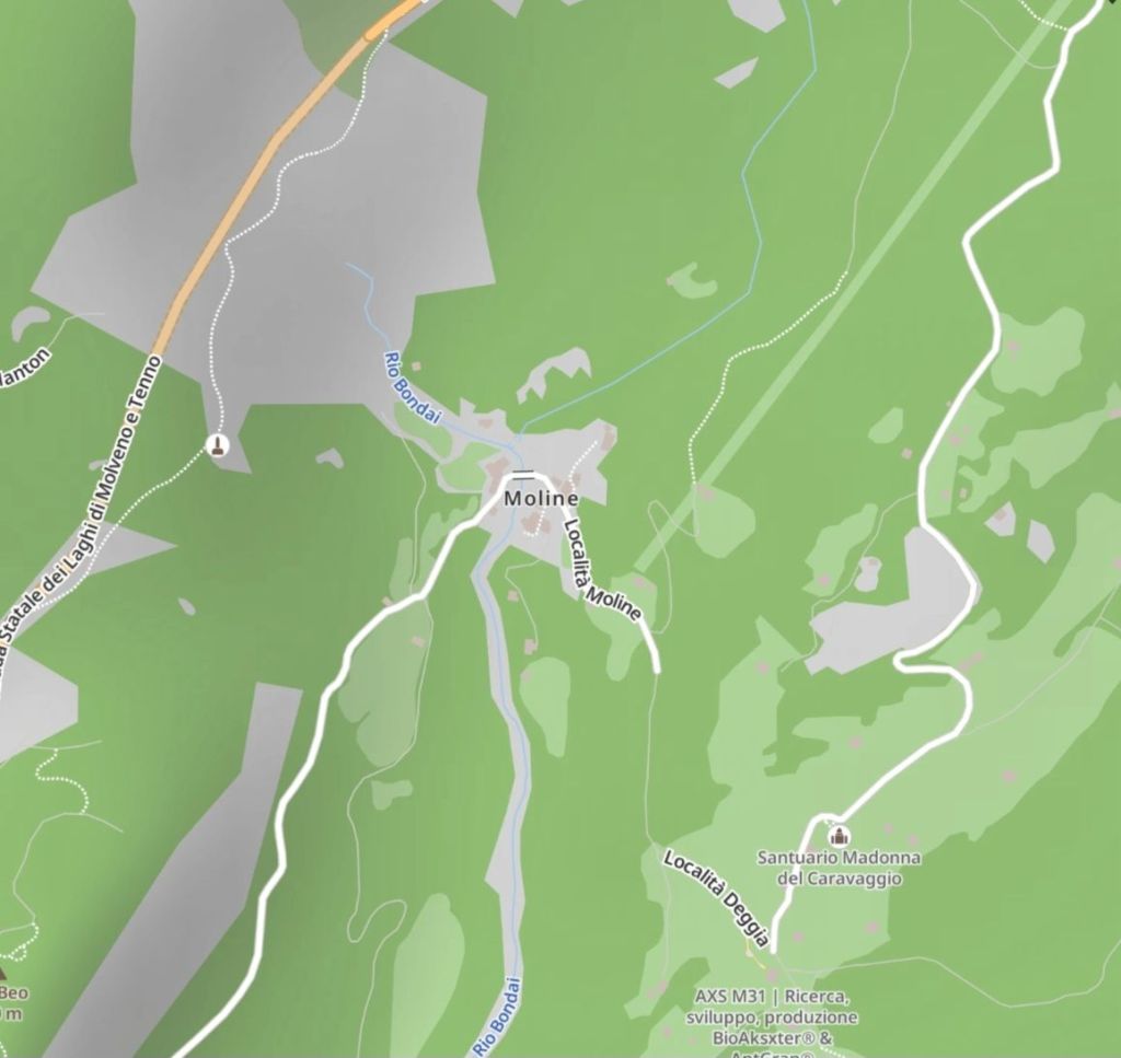 Dann wurde es lustig. Der enge, zumindest asphaltierte Weg führte wieder bergab in den Wald hinein, wo dann eine Gruppe Pfadfinder verteilt am Wegrand saß und mich mit Rufen und Winken den Berg hinunter geleitete. Unten angekommen, sah ich ein malerisches kleines Dorf, Moline, mit einer uralten steinernen Brücke über den Rio Bondai. Die Fotos dazu habe ich mir in Komoot von Attilo, Syrio und Sandy ausgeborgt.