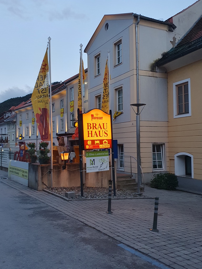 Wenn man schon in der Bierstadt Murau ist, muß man natürlich dem Brauhaus einen Besuch abstatten. Und so bekam ich neben ein paar guten Bieren auch noch die Würstel mit Saft, auf die ich mich schon so gefreut hatte.