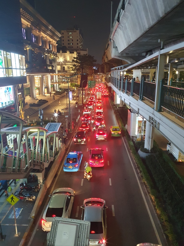 Zurück zum Hotel nahmen wir den Weg über den R Walk (Ratchaprasong SkyWalk) der für sich schon ein Highlight des modernen Bangkok ist. Genauso wie beim BTS Skytrain wird auch hier der vorhandene Platz bestmöglich genutzt und der private, öffentliche und fußläufige Verkehr kann auf mehreren Ebenen stattfinden. Sowohl zu Hitzezeiten als auch in Zeiten des Regens kann man kreuzungsfrei einen der prosperierendsten Stadtteile Bangkoks, den Ratchaprasong District durchqueren. Wir konnten das in den zwei Tagen natürlich nicht überprüfen, aber wenn man dort ist, klingt es sehr glaubwürdig.