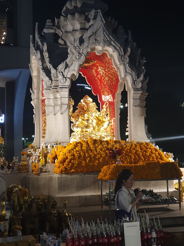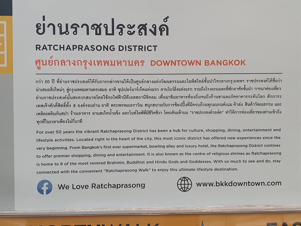 Neun Shopping Malls mit über 5500 Geschäften, Restaurants und Spas, 9 Luxushotels und 8 Tempel und Schreine werden so miteinander verbunden. Rauf und runter kommt man bequem, es gibt neben den Stiegen genügend Lifte und natürlich in den Shopping Malls auch die Rolltreppen. Auch den Erawan Schrein kann man so von oben bewundern und leicht erreichen. Öffentlich ist der Skywalk über die Stationen Chidlom und Siam der BTS auch sehr gut angebunden. Ins Big C oder Gaysorn Village Shoppingcenter zum Beispiel kann man direkt gehen, ins CentralwOrld muss man leider (oder zur Abwechslung Gott sei Dank) hinaus.