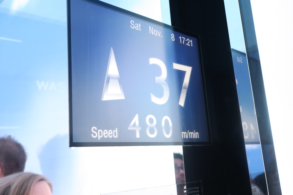 Das Ticket war zuerst für die Liftfahrt in das 74.Stockwerk reserviert mit einer tollen Rundumsicht, die hier aber hinter Glas war, wahrscheinlich zur Eingewöhnung an die außergewöhnliche Höhe, die man mit einer Geschwindigkeit von 480 m/min erreicht. Eine Ausstellung zur Geschichte des Gebäudes rundet das Bild ab.