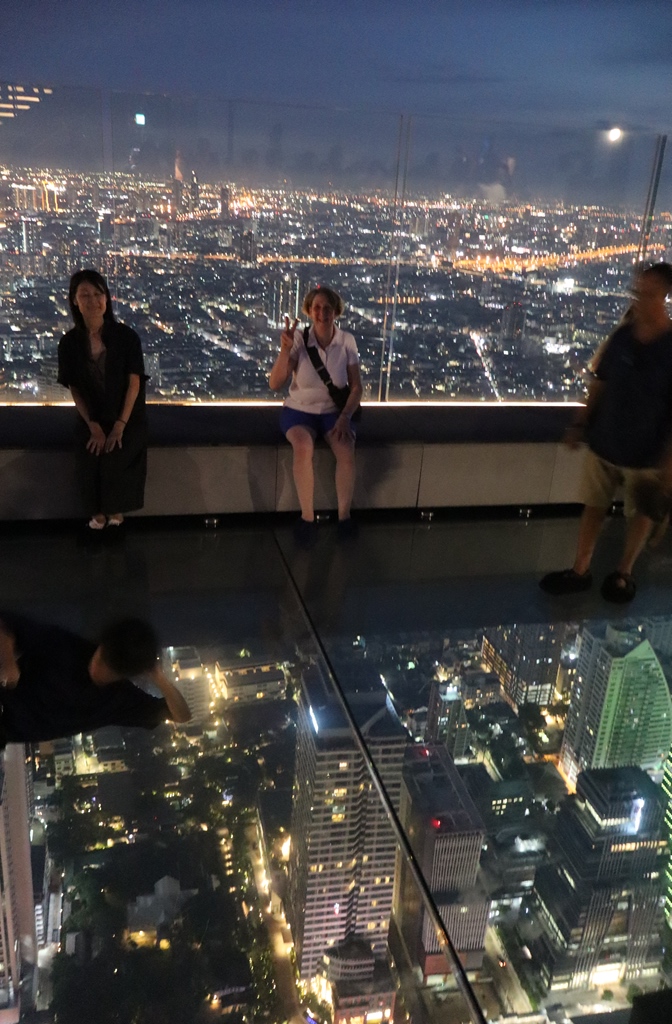 Das nächste Highlight war dann nach Sonnenuntergang der Skywalk mit Glasboden mit Blick 310 m hinunter ins Leere. Bei einem kleinen Hochhaus in der Nachbarschaft zählte ich die Stockwerke. 20 waren es an der Zahl, in dieser Höhe war mein Office bei Capgemini in Wien im Millennium Tower. Aus dem 78. Stockwerk hier sah das wie ein Spielzeughaus aus.