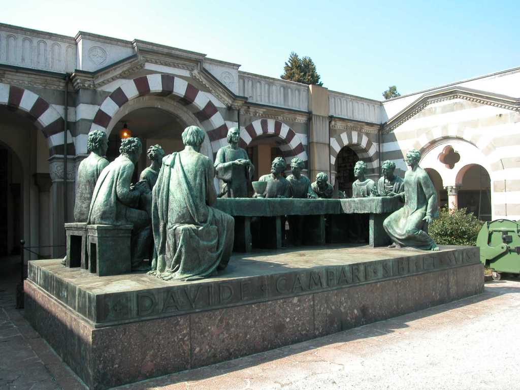 Beim empfehlenswerten Besuch auf dem Mailänder Monumentalfriedhof (Cimitero Monumentale) habe ich die beeindruckende Bronzeskulptur am Familiengrab der Campari (ja, die mit dem Likör) entdeckt. Geschaffen von Giannino Castiglioni, zeigt das monumentale Werk Jesus und die zwölf Jünger beim letztenAbendmahl. Es ist eines der bekanntesten Kunstwerke auf diesem historischen Friedhof.