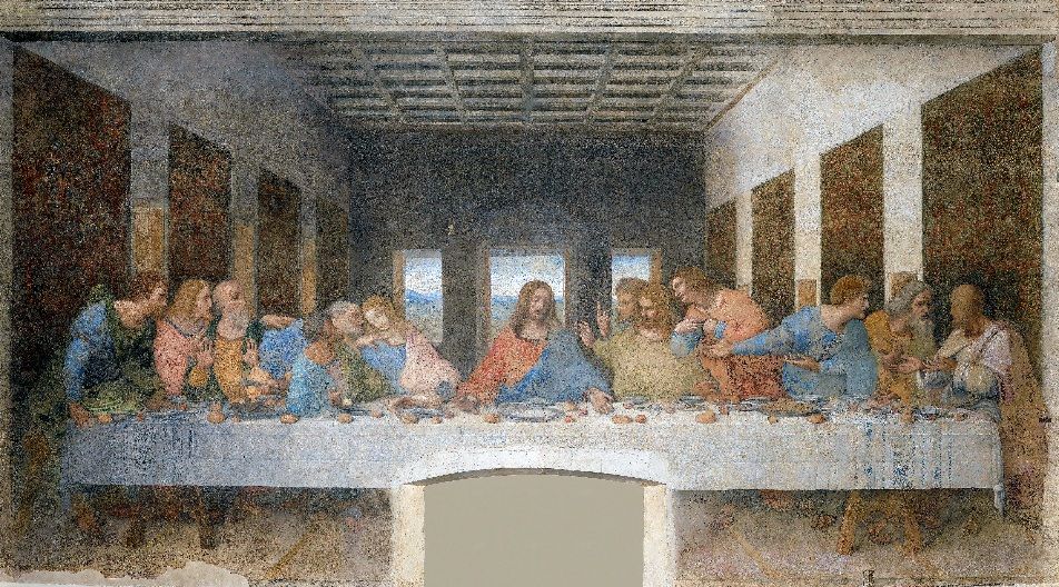 Das letzte Abendmahl als Gemälde und als Bronzeskulptur in Mailand