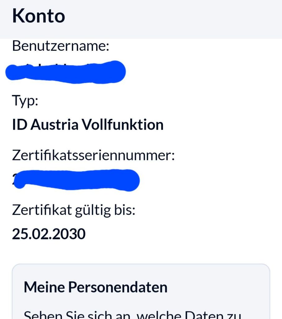 Jetzt können Sie die Daten und die Gültigkeitsdauer Ihrer ID Austria einsehen.