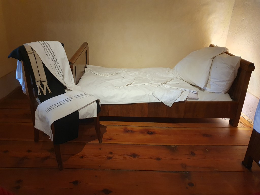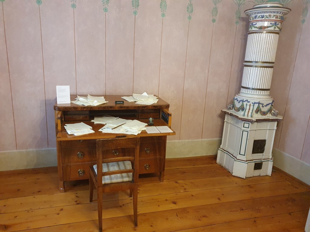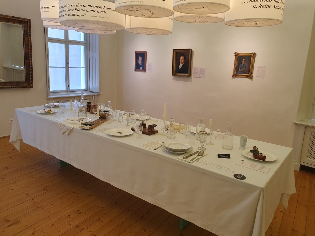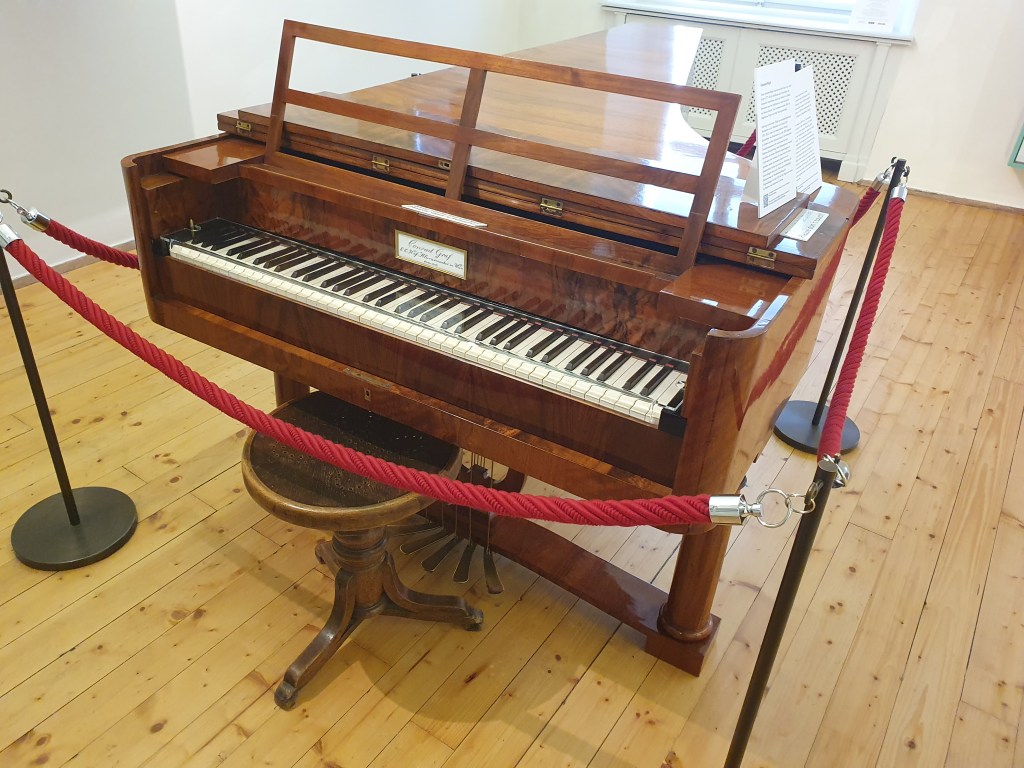 Die ausgestellten Möbelstücke sind nicht original, sondern stammen aus der Zeit Beethovens und geben die Atmosphäre wieder, in der er in diesem Haus gelebt hat. Auf dem Hammerklavier hat er aber schon einige Male selbst gespielt und heute werden darauf auch wieder Konzerte gegeben. Die Geschichte dazu findet ihr im Link unten.