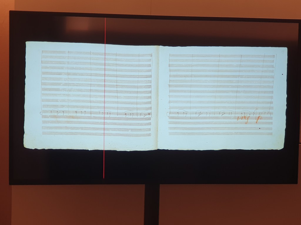 Nicht nur „Die Neunte“, sondern unter anderem auch „Wellingtons Sieg oder die Schlacht bei Vittoria“ oder die „Missa solemnis“ sind zumindest teilweise in Baden entstandenen und können an eigenen Klangständen auch außerhalb der Sonderausstellung nachgehört werden.