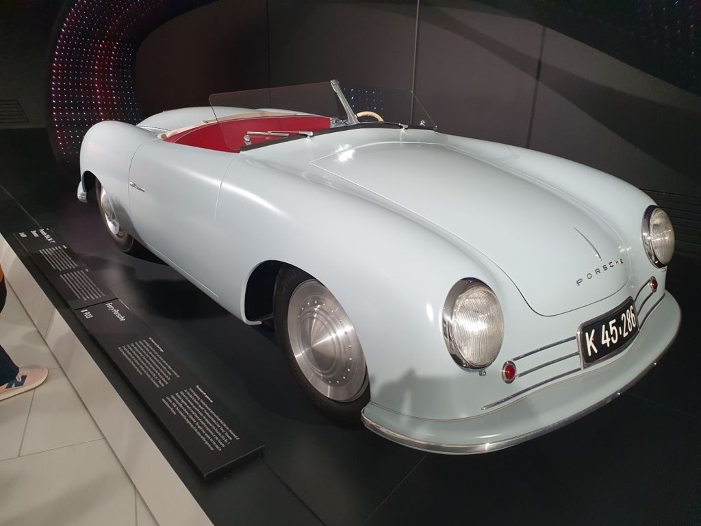 Mein Hotel lag nur einige Minuten Fußweg vom Porsche Museum, so konnte ich rasch in die Ausstellung gelangen. Gleich als eines der ersten Exponate entdeckte ich einen Porsche 356, den Ferdinand Porsche 1948/1949 im kärtnerischen Gmünd gebaut hatte. Ferdinand Porsche, war auch langjähriger Direktor der Austro-Daimler Motoren AG in Wiener Neustadt. Er arbeitete auch bei Daimler in Stuttgart, worauf ich bei meinem Mercedes Kapitel eingehe.
