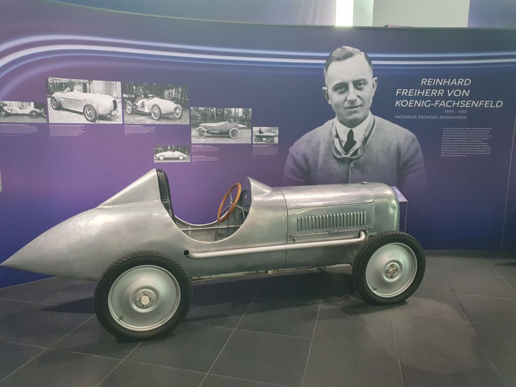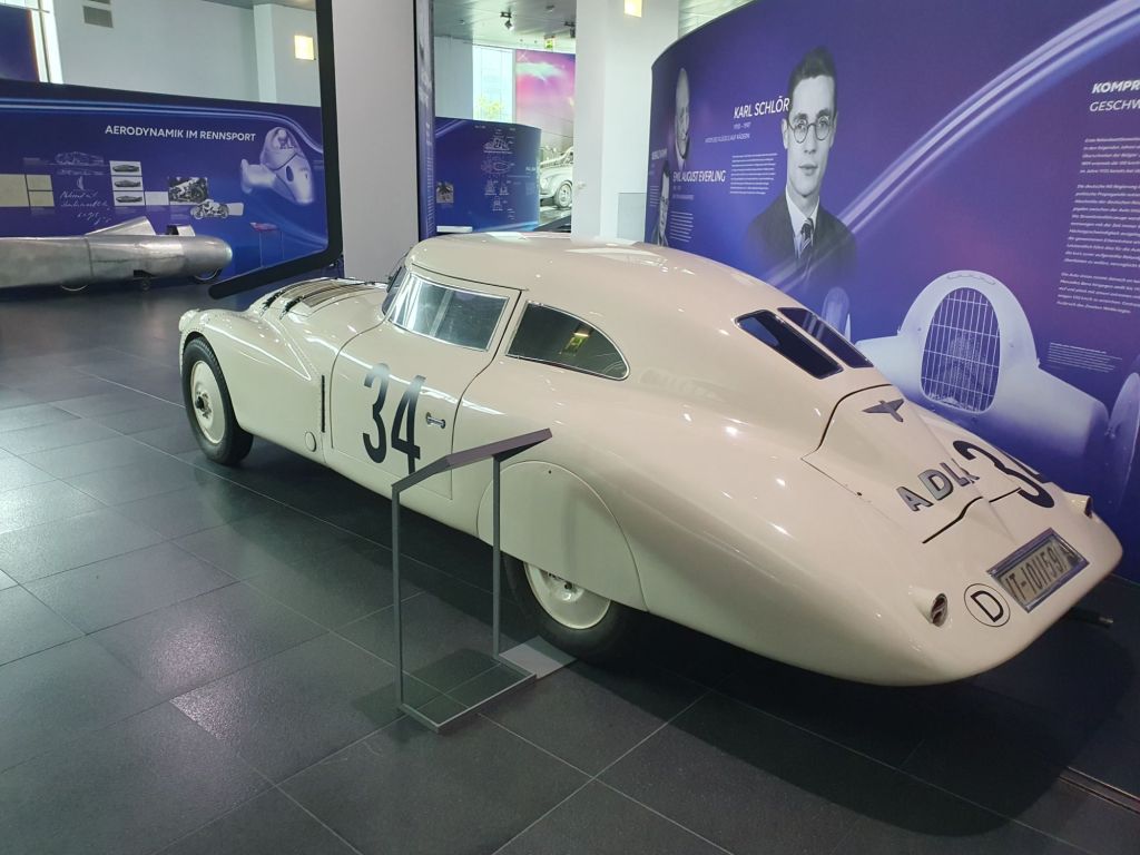Die Silberpfeile und die Hochgeschwindigkeitswagen der 30er Jahre des vorigen Jahrhunderts nehmen natürlich auch einen sehr prominenten Platz ein. Es ist fast nicht nachvollziehbar, daß schon in den 1930ern auf einem Stück der deutschen Reichsautobahn mit den damals extrem schweren und unhandlichen Reifen ein Geschwindigkeitsrekord von rund 400 km zustande kam.