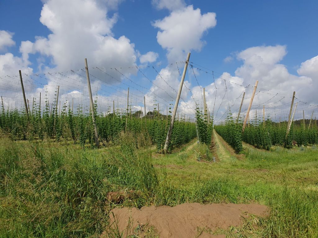 Auch der Montag war wieder sonnig und ich verzichtete auf die Regenkombi, der Weg nach Dingolfing ins dortige Museum für Industriegeschichte war theoretisch nur runde 100 km und ich wollte daher auch möglichst wenig die Autobahn benutzen. Wegen des Hochwassers waren aber auch hier südlich der Donau und nördlich der Isar eine Reihe von Straßen im recht flachen Land gesperrt, was das Navi und meinen Orientierungssinn wieder herausforderte. So folgte ich einem Einheimischen kilometerweit über Feldwege vorbei an Hopfenfeldern und ersparte mir einen Riesenumweg.