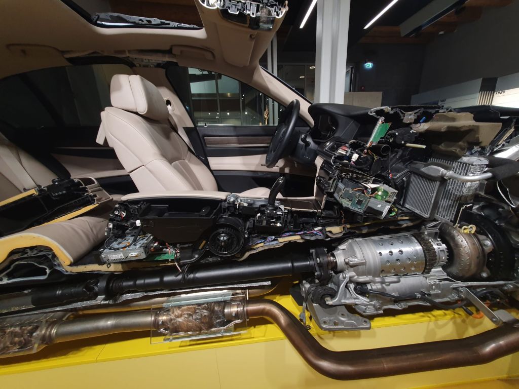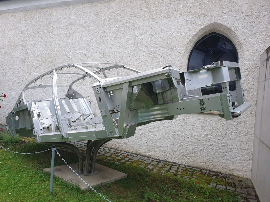 Im Hof ist dann noch das Alu Space Frame genannte Auto-Skelett eines Rolls Royce Phantom, das ebenfalls in Dingolfing erzeugt wird, zu sehen.