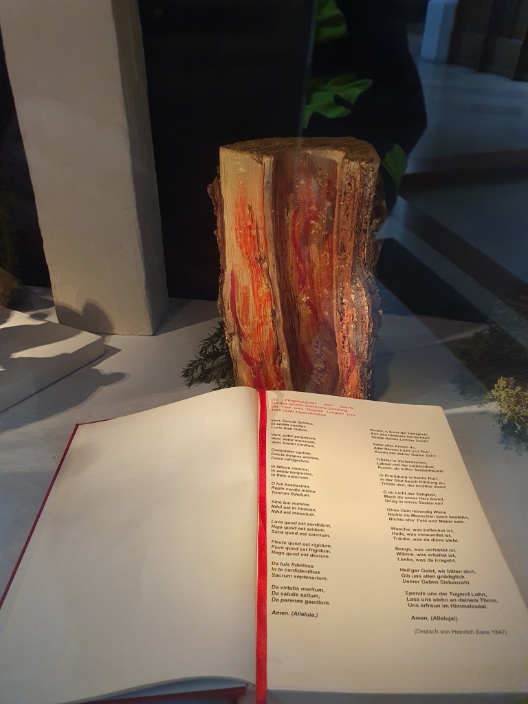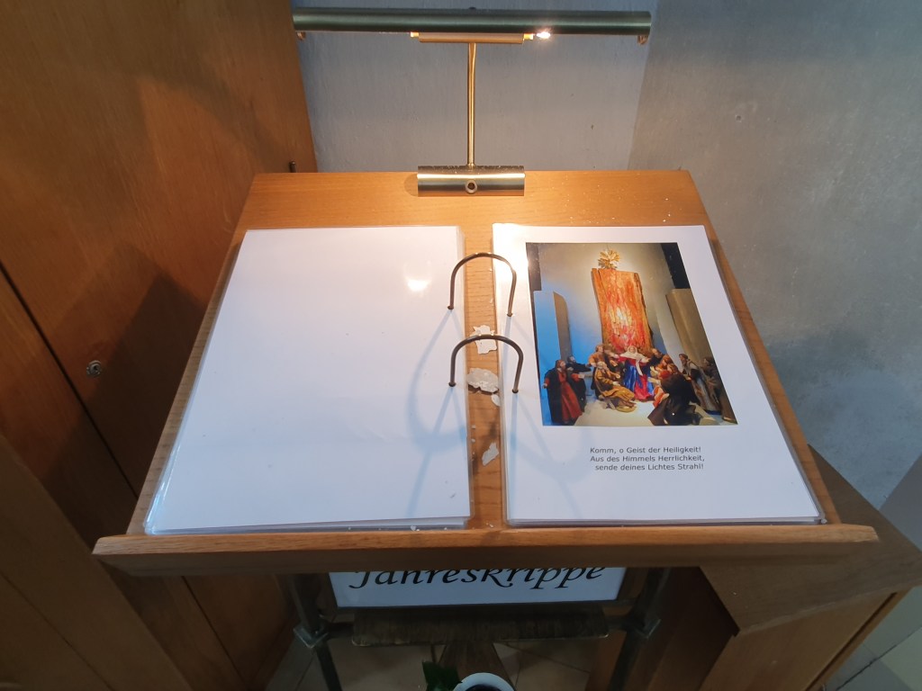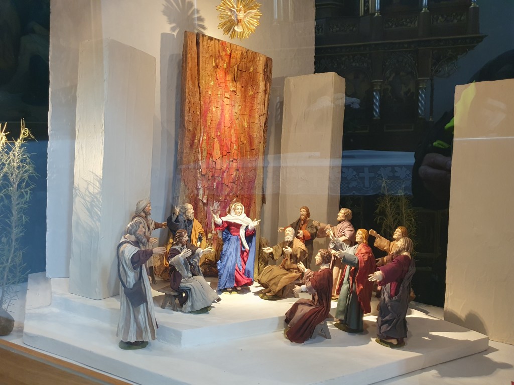 In der Stadtpfarrkirche entdeckte ich als Krippenfan etwas, das in Österreich sehr selten ist, aber in Bayern wieder eine Renaissance erfuhr, nämlich eine Jahreskrippe. Hier werden die Ereignisse des Kirchenjahres dargestellt und entsprechend umgebaut. Derzeit ist das Pfingstfest als Thema dargestellt.