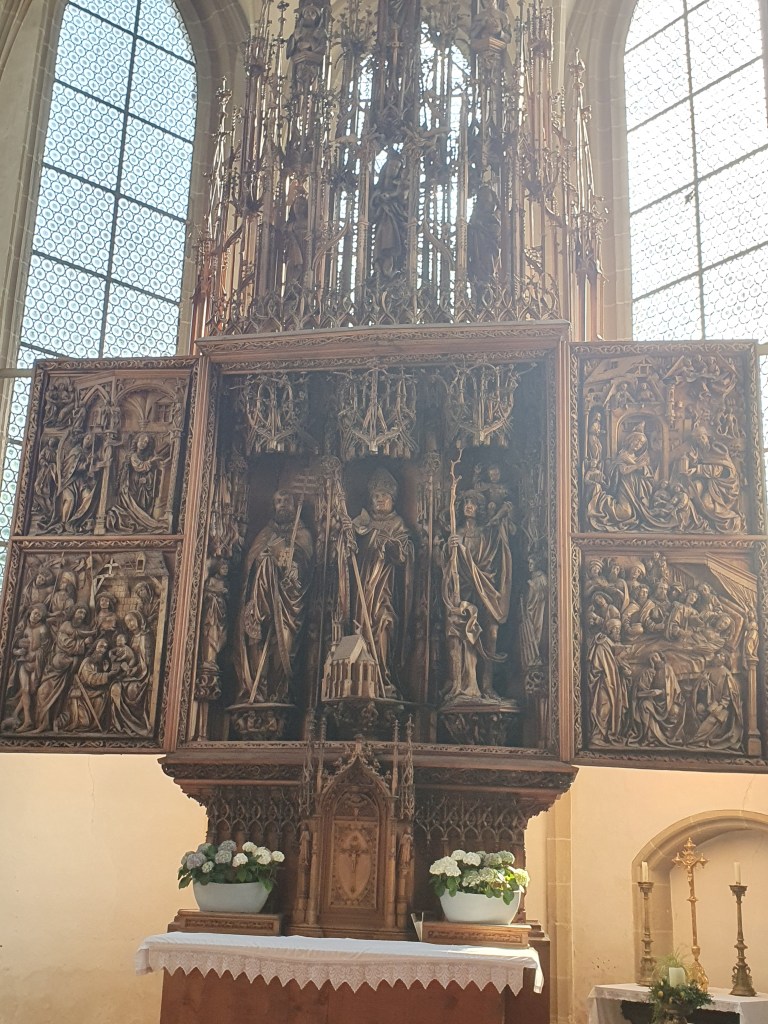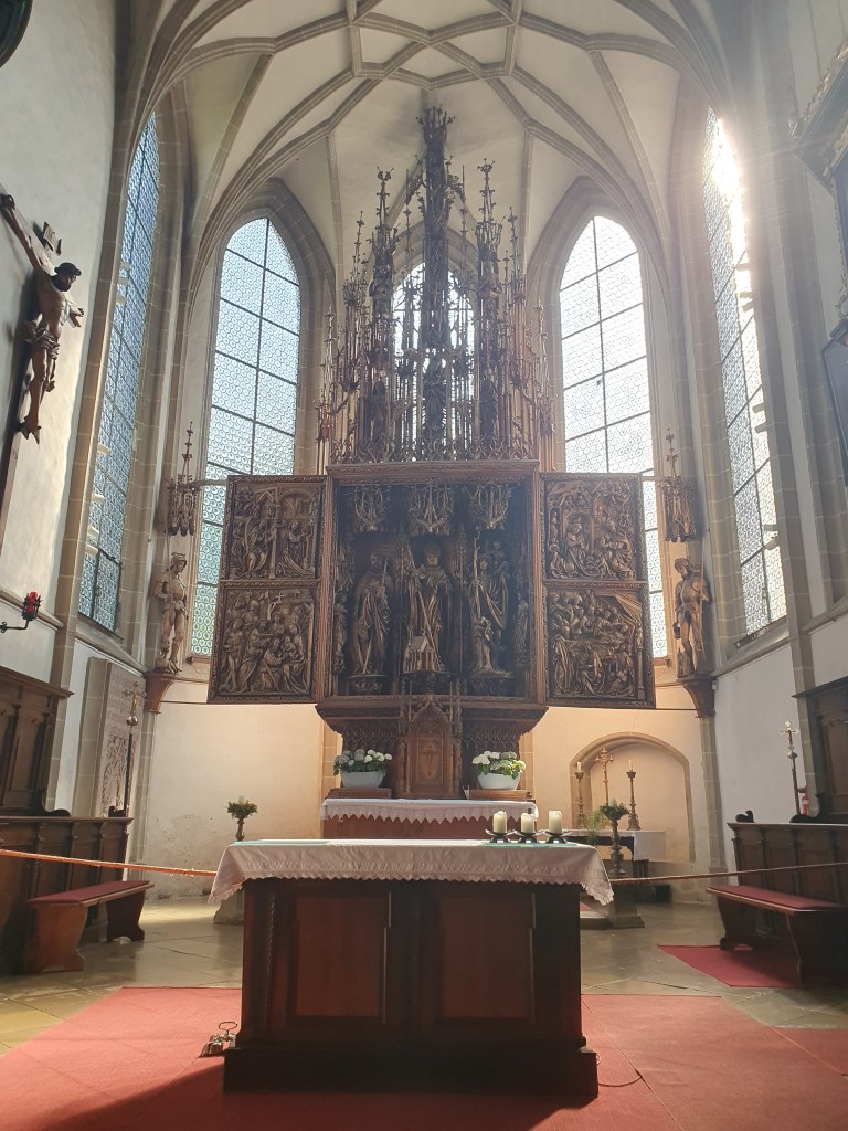 Danach wollte ich natürlich das eigentliche Juwel des Ortes besichtigen. Die Pfarrkirche beherbergt den Kefermarkter Flügelaltar, ein Ende des 15.Jahrhunderts aus Lindenholz gefertigter 13,5 m hoher Schrein mit überlebensgroßen Statuen des heiligen Petrus, des heiligen Wolfgang und des heiligen Christophorus. Dieser von einem unbekannten Künstler geschaffene Flügelaltar zählt zu den Hauptwerken der Gotik im deutschsprachigen Raum und zu den bekanntesten Altären Österreichs.