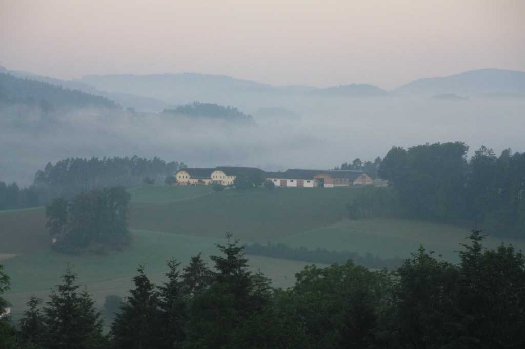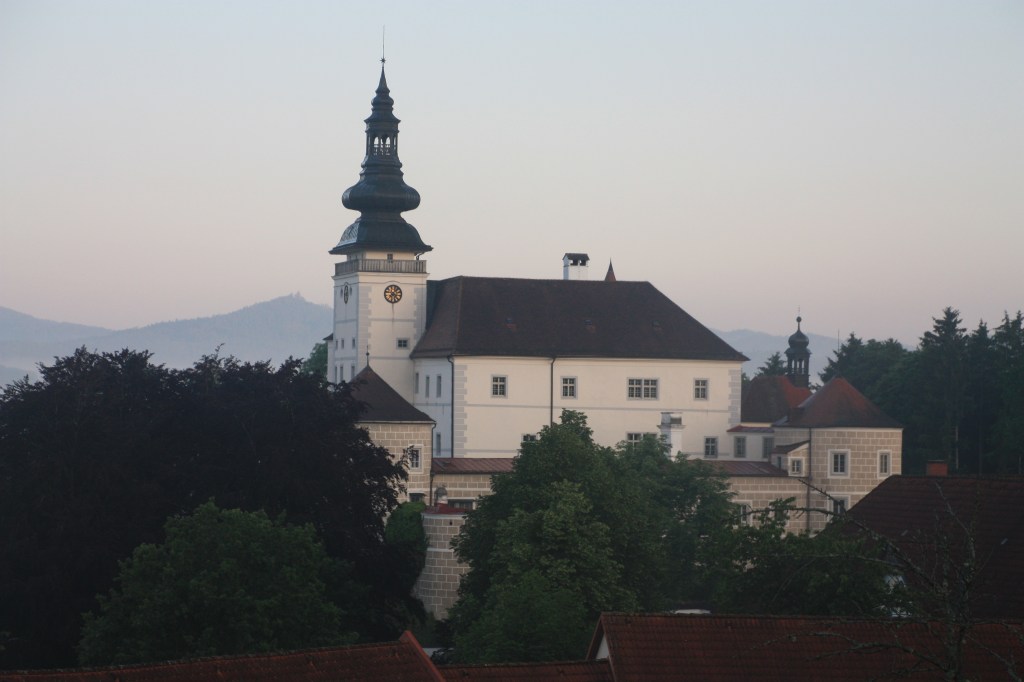 Mein geplanter nächster Stopp wäre zuerst der am Weg gelegene Eberhofer-Kreisel bei Frontenhausen und dann Braunau am Inn gewesen, doch wegen einiger Hochwasser-bedingter Umleitungen landete ich weiter nördlich an der Innbrücke von Schärding. Nach einem stärkenden Eiskaffee am Stadtplatz machte ich mich auf den Weg quer durch Oberösterreich nach Kefermarkt, wo ich im Gebäude der Schlossbrauerei des Schloss Weinberg, das ein oberösterreichisches Erwachsenen- Bildungszentrum beherbergt, übernachten wollte. Das hier gebraute Bier musste natürlich verkostet und der Hunger nach dem langen Tag mit einem köstlichen Kalbsbeuschel mit Knödel gestillt werden.