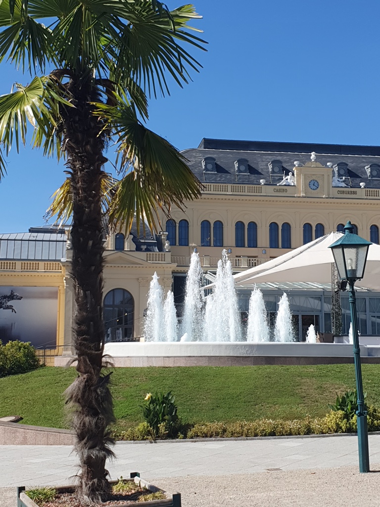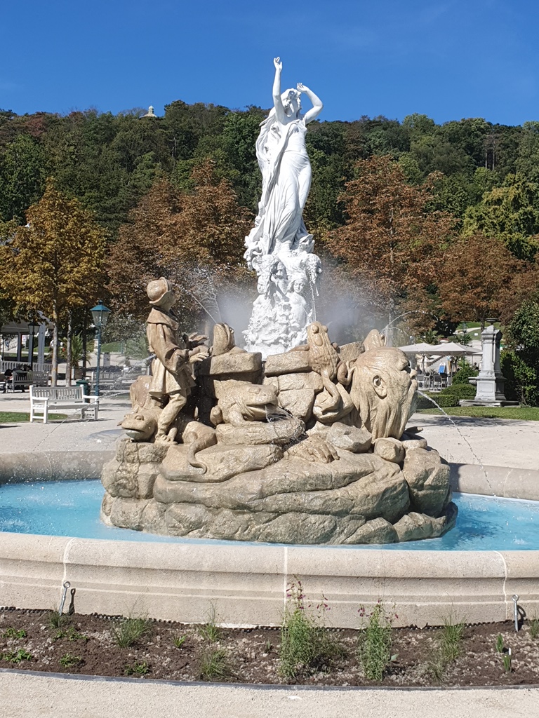 Meist entdecken wir bei unserem Spaziergang das eine oder andere Motiv in der Stadt, die 2021 mit der Vereinigung Great Spa Towns of Europe als transnationale, serielle Welterbestätte in die Liste des UNESCO-Welterbes aufgenommen wurde. Elf Kurorte in sieben europäischen Ländern sind mit ihren historischen Kur- und Badeanlagen, Trink- und Wandelhallen, Promenaden, Parks, Lustgärten und Kurhotels Teil davon. Der Undine-Brunnen im Kurpark wurde erst am Tag vor unserem Besuch neu renoviert wieder in Betrieb genommen.