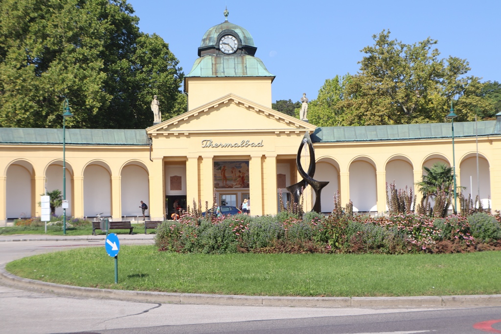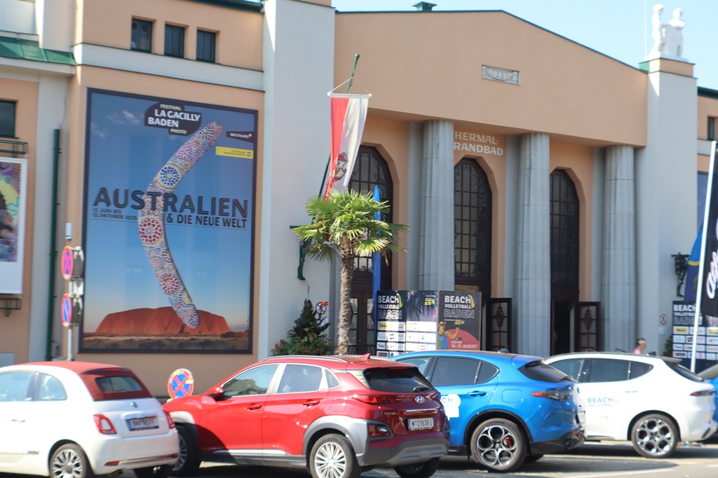 Am Eingang zum Helenental, wo ich später auf meiner Runde noch landen sollte, erreichte ich die Stadt Baden. Um auf der Weinstraße zu bleiben, musste ich leider die Stadt durchqueren. Es gäbe Gründe genug, vom Stadttheater und der Sommerarena über das Arnulf Rainer Museum, das Beethoven-Haus bis zum Fotofestival La Gacilly, um hier stehen zu bleiben. Im August 2025 fand auch das größte Beachvolleyball-Tournier in der schon 20-jährigen Geschichte in Baden statt.