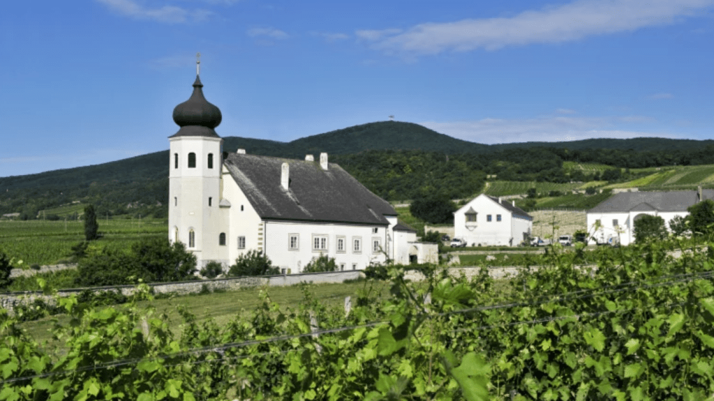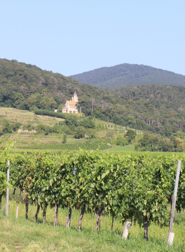 Nach Gumpoldskirchen freute sich mein Motorradfahrerherz über die Fahrt hinauf auf die Höhe des Eichberges, wobei der Blick auch hinunter auf eines der ältesten Weingüter Österreichs fällt, dem seit 1141 bestehenden Freigut Thallern.