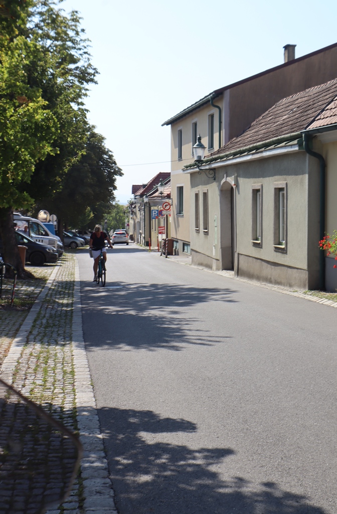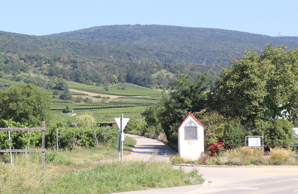 Nach der Stadt bog ich wieder auf die Weinbergstraße und ab der Abzweigung zur „Einöde“ beim nächsten Weinort Paffstätten machte auch das Motorradfahren wieder wirklich Spaß. In Pfaffstätten findet jedes Jahr im August einer der bekanntesten Großheurigen statt.