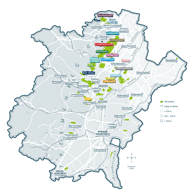 Die Weinorte des Weinbaugebietes Thermenregion
