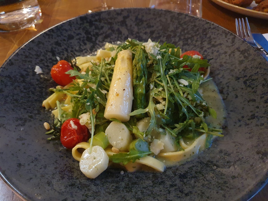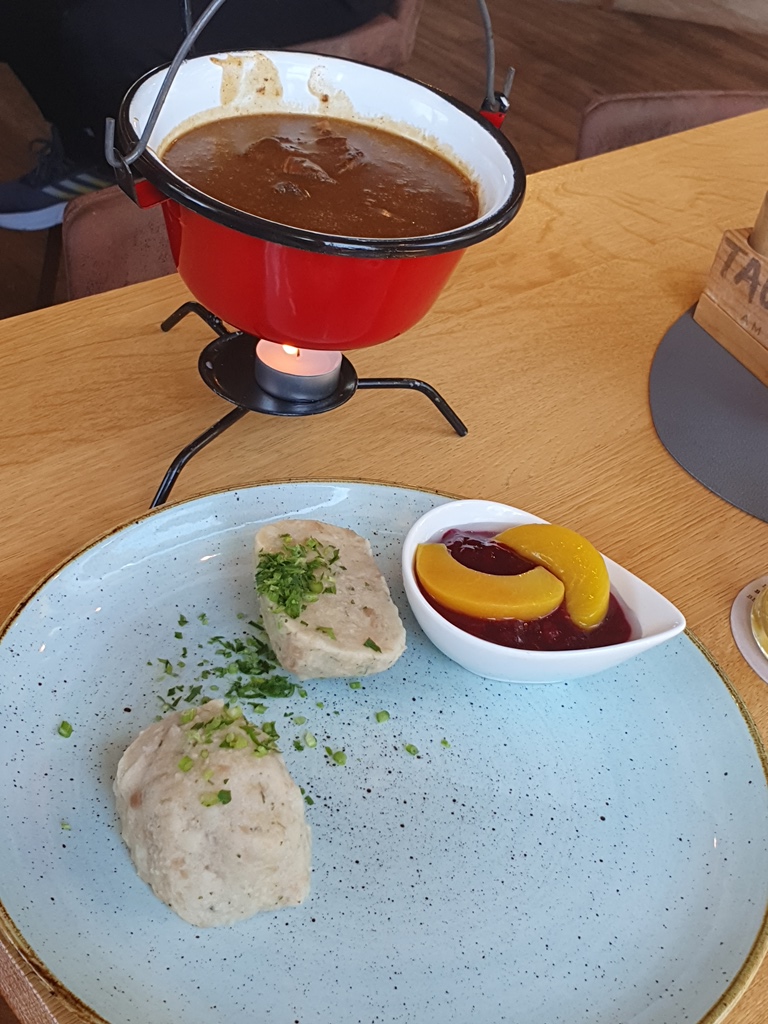 Da wir trotz vieler Fotostopps zu früh wieder zurück im Ort waren, fuhren wir den EV13 noch Richtung Schloss Halbturn weiter, kehrten aber wegen unseres Hungers auf halbem Weg um, damit wir noch etwas essen konnten und nicht zu spät zur Weinkost kommen. Wir hatten etwas außerhalb von Andau den „Tauber am See“ entdeckt, den wir ebenfalls probieren wollten und daher dort hin fuhren. Hier werden hauptsächlich regionale Ausgangsprodukte zu herrlichen Gerichten verkocht, vom Steak über Fisch bis zur Pizza gibt es alles in super Qualität in einem coolen Ambiente.