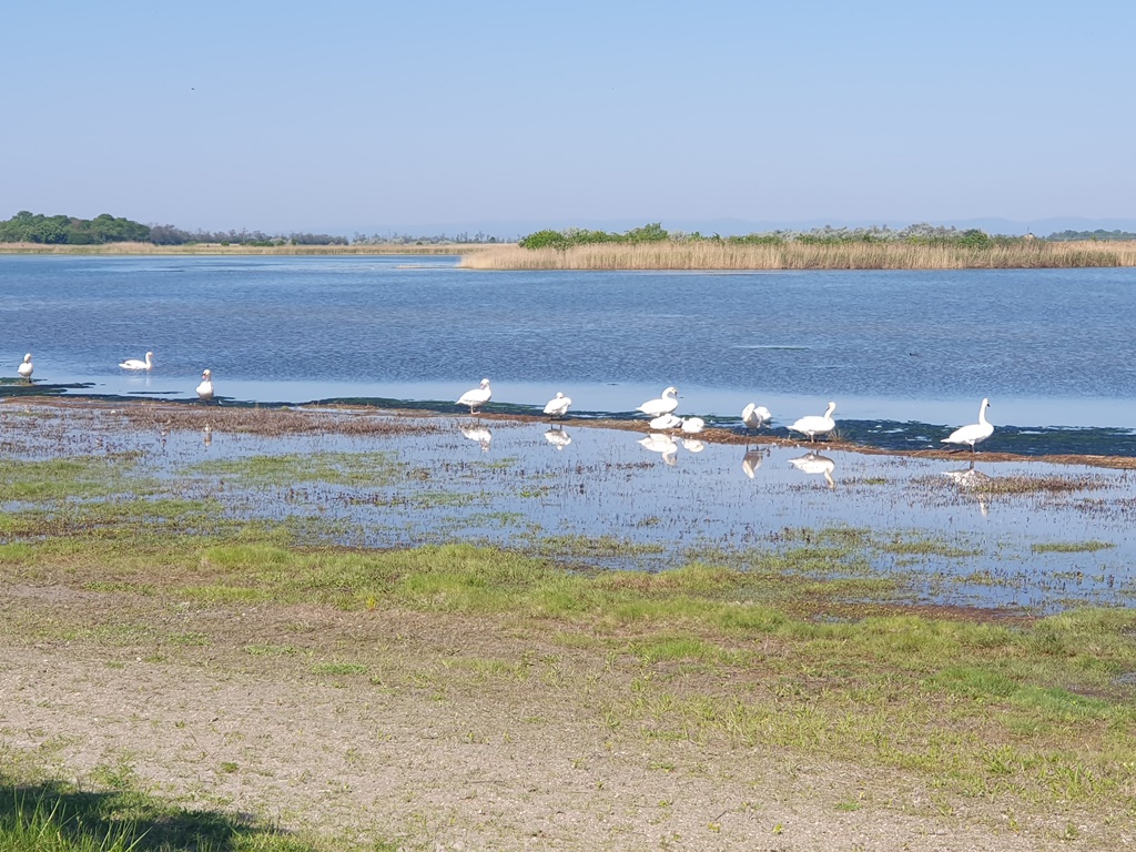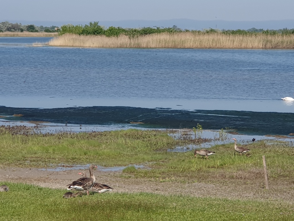 Der See war 2022 und 2023 vollständig ausgetrocknet, hat sich aber seit 2024 durch Niederschläge und eingepumptes Grundwasser wieder etwas erholt und die Vogelwelt ist wieder zurückgekehrt und genießt wieder den angestammten Platz. Auch wir schauten und fotografierten, wenn auch nicht so professionell wie so manche Vogelbeobachter aus halb Europa.