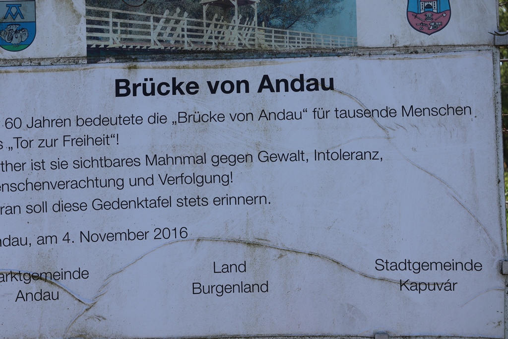 Die Brücke von Andau, über die im November 1956 70-80.000 Menschen während des Ungarn-Aufstands nach Österreich geflüchtet waren, wurde schließlich von gesprengt und von russischen und ungarischen Grenzposten bewacht. Erst im Jahr 1996 wurde sie von österreichischen und ungarischen Soldaten gemeinsam wieder errichtet.