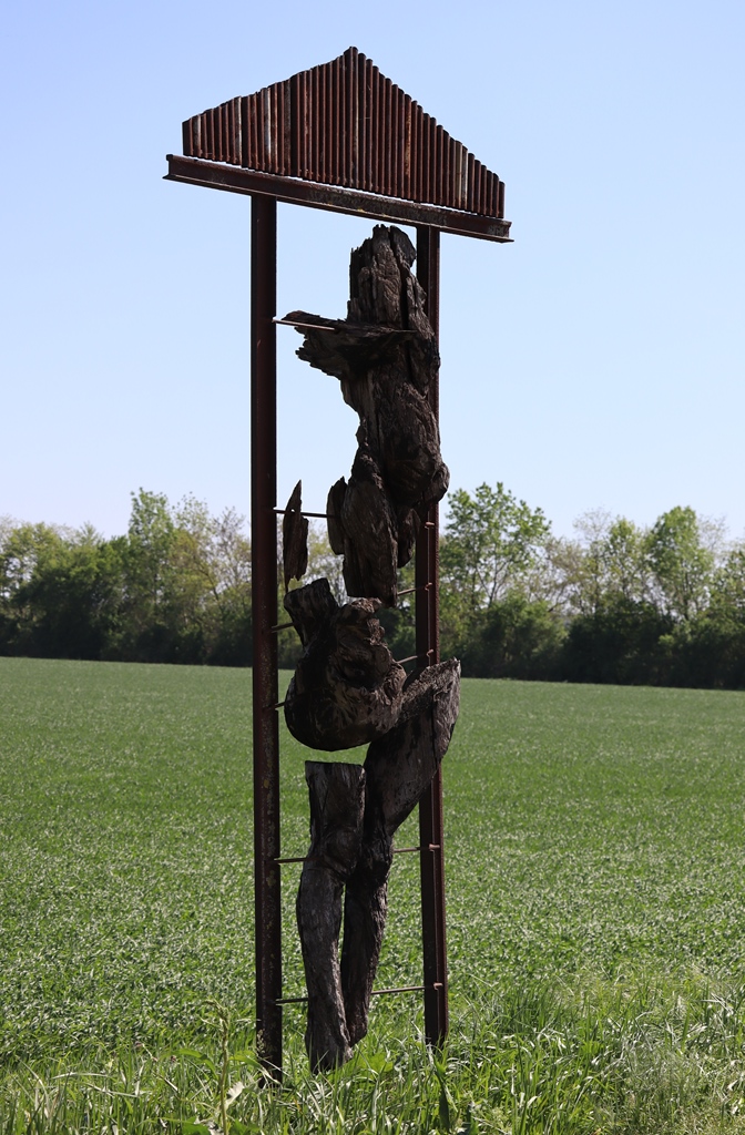 Dieses Denkmal, das laut Homepage von Andau an die unselige Zeit des geteilten Europas erinnert, aber auch Symbol für Hilfsbereitschaft, für Toleranz und Zusammengehörigkeit über alle politischen Grenzen hinweg ist, war unser erstes Ziel am Sonntag, ungefähr 10 km außerhalb des Ortes. Was wir als Bürger innerhalb Österreichs nicht bedachten, war das Kürzel „MKS“. Es gab auf einmal neben dem Weg eine Sperrzone wegen der Maul- und Klauenseuche und der Zugang zur Brücke war ebenfalls verboten. So fuhren wir den gleichen Weg, den Eurovelo 13 wieder zurück und beachteten die Kunstwerke mehr als am Hinweg. Dieser „Skulpturenpark an der Fluchtstraße“ aus rund 90 Figuren entstand 1992 bis 1996 während internationaler Künstlersymposien auf österreichischer und ungarischer Seite.