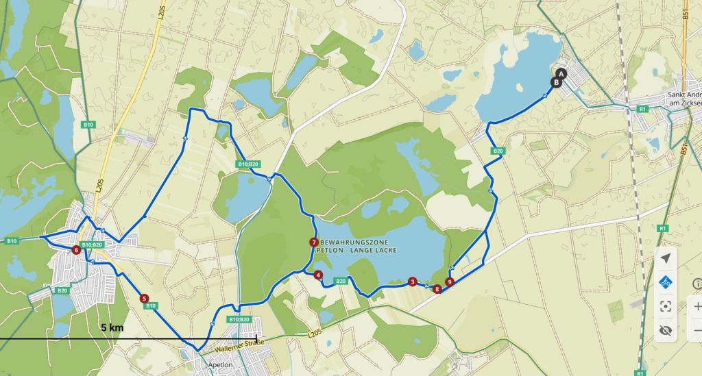 Dann fuhren wir am Südufer entlang, teilweise dem Lackenradweg B20 folgend ans Südufer der Langen Lacke und auf einem Feldweg nördlich an Apetlon vorbei bis Illmitz wo wir bei einem Bauern frisch gestochene Spargel zum Mitnehmen kauften. Weiter ging es einige Kilometer nach Norden bis wir Richtung östliche Spitze der Langen Lacke abbogen, um dann zum Großteil den gleichen Weg zurück zum Zicksee zu nehmen. Nach rund 31 Kilometern und 30 Höhenmetern gab es noch ein Mittagessen im Gasthaus Seeblick bevor es wieder mit dem Auto nach Hause ging.