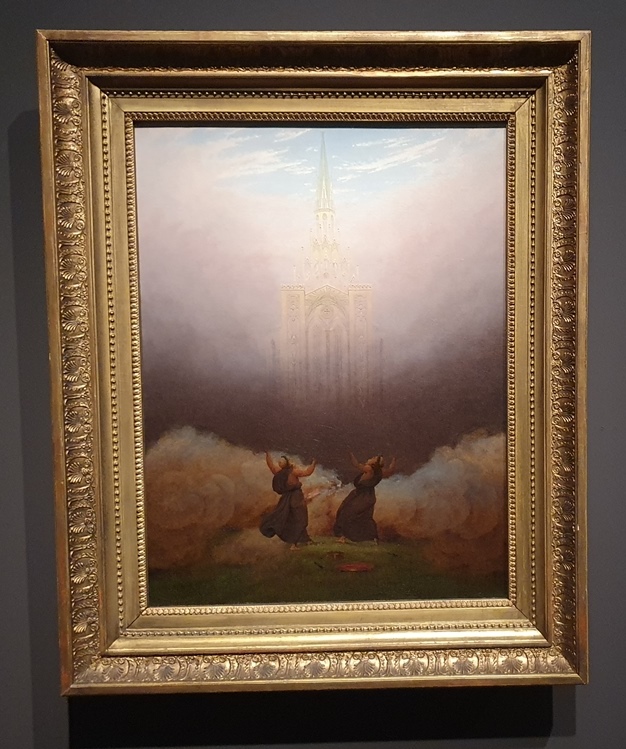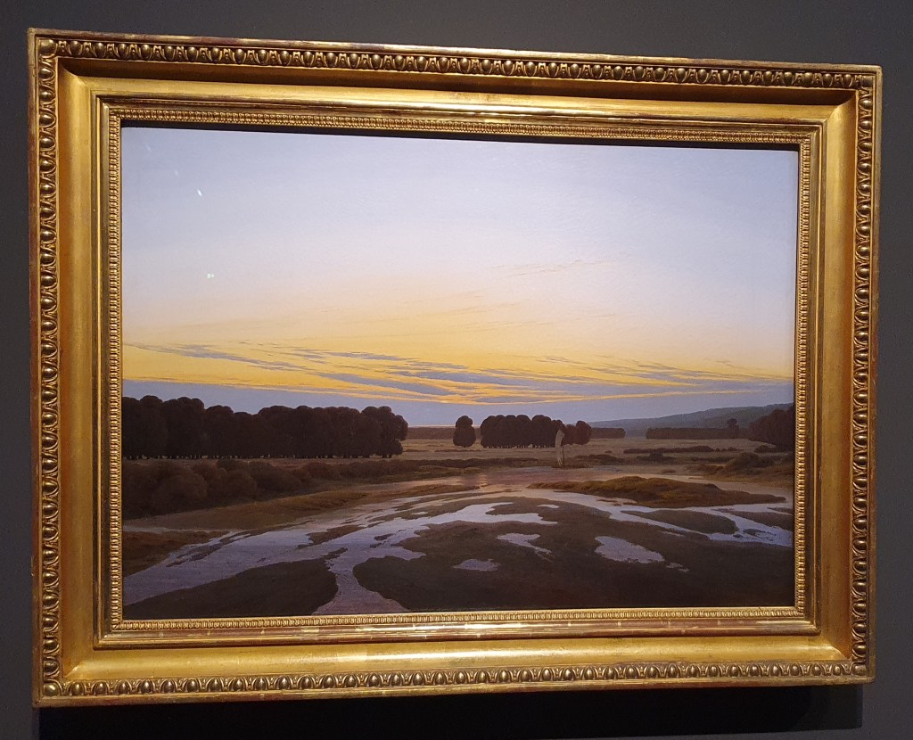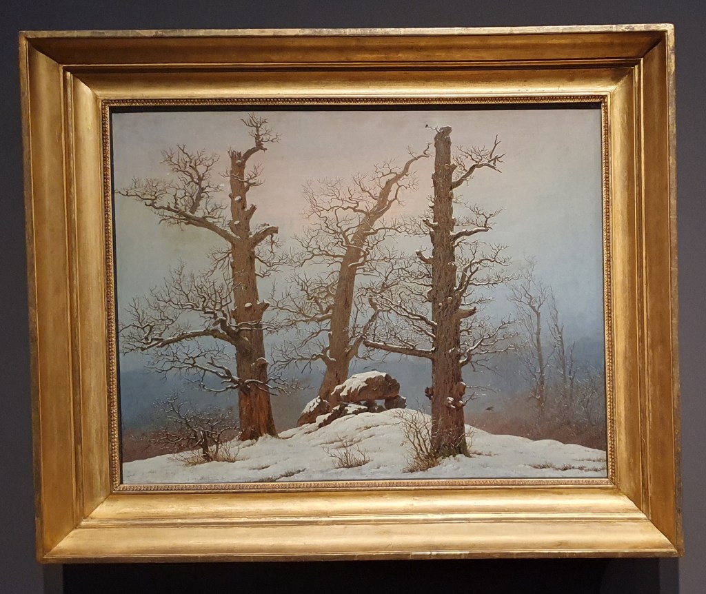 Ich bin kein Kunstgeschichtler, sondern nur an schönen Bildern interessiert, daher ist möglicherweise meine Sicht nicht richtig, wissenschaftlich fundiert ist sie sicher nicht. Meine Kusine, die Kunstgeschichte studiert hat, mag mich eventuell korrigieren, aber mir ging es im direkten Vergleich in der Ausstellung wie jemandem, der eine interessante Dokumentation zu einem Thema gesehen und nachher einen fesselnden Roman zum gleichen Thema gelesen hat. Darum seht ihr hier unten auch nur Bilder C.D.Friedrichs.