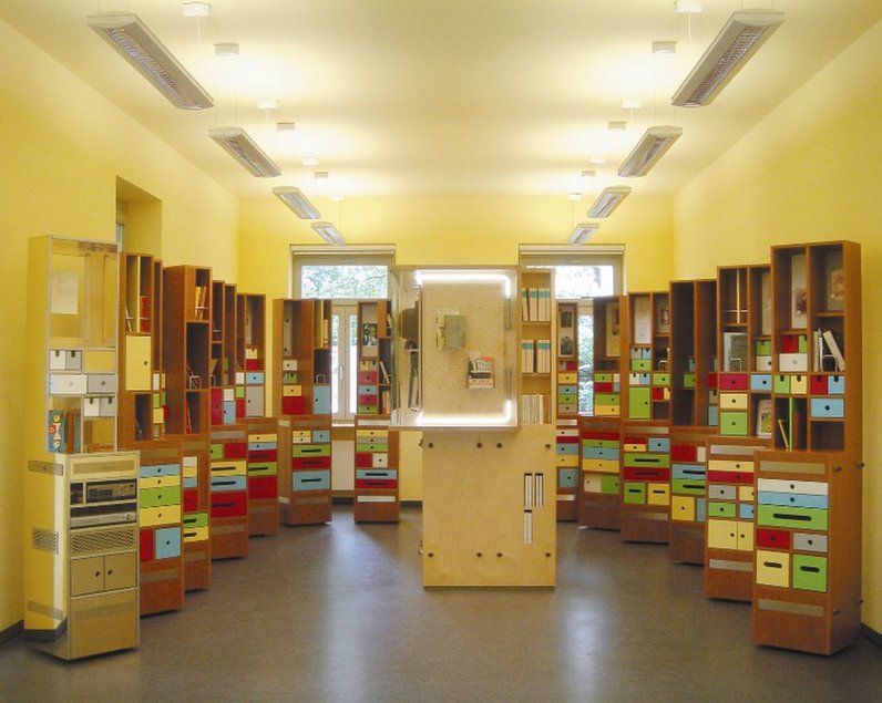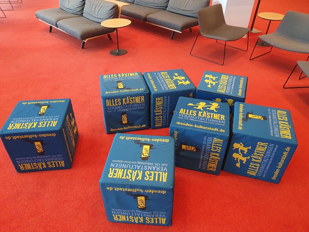 Auch im Kulturpalast, wo neben dem Konzertsaal auch eine tolle städtische Bibliothek untergebracht ist, wird nicht auf ihn vergessen. Diese Schaumstoffwürfel werden von manchen Besuchern als Fußstütze oder als Arbeitstischchen verwendet.