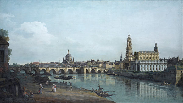 Die meisten seiner Weggefährten und Zeitgenossen sind für mich Dokumentatoren, exakt bis zur Darstellung der letzen Haarspitze oder des kleinsten Astes eines Baumes. So definiert zum Beispiel der berühmte „Canaletto-Blick“ auf die Stadtsilhouette von der Hofkirche bis zur Brühlschen Terrasse fast fotorealistisch die Gestalt der Stadt Dresden bis heute. Leider haben wir es aus zeitlichen Gründen nicht geschafft, uns das ebenfalls anzusehen.