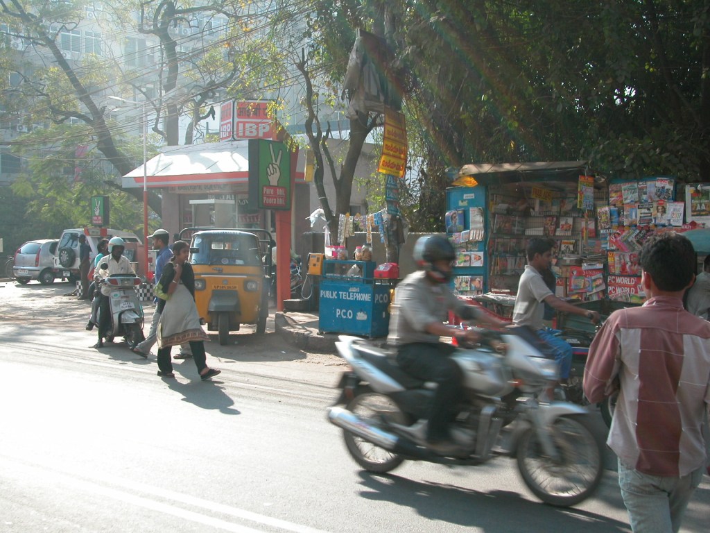 Wir fahren am Victoria Terminal vorbei und biegen dann Richtung Küste ab, schön langsam kann ich die Richtungen schon zuordnen und irgendwie denke ich mir, daß mein Fahrer kompliziert fährt. Die Straßen werden besser, die Gehsteige sind befestigt und sauber, es gibt Ampeln, die neuen Autos werden mehr, sogar 2 Mercedes sind dabei, wir befinden uns eindeutig in einem der nobleren Teile Mumbais. Hier gibt es auch Markierungen für die Fahrspuren, das wird aber hauptsächlich von den Taxis nicht einmal als Vorschlag zur Kenntnis genommen und man fährt irgendwo dazwischen und ist dadurch immer wieder einem anderen Fahrzeug im Weg, aber dafür gibt’s ja die Hupe.