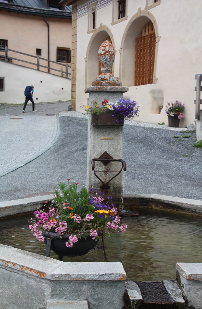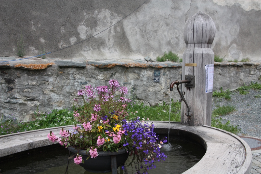 Einige der sieben Brunnen, welche früher Treffpunkt der Bevölkerung und Mittelpunkt des sozialen Lebens waren, habe ich ebenfalls fotografiert. Das Dorf lebt aber auch heute noch, obwohl die Abwanderung wie in vielen Schweizer Bergdörfern in den letzten 100 Jahren die Bevölkerung beinahe halbiert hat. Die meisten der 70 Häuser sind bewohnt, es leben noch rund 170 Personen hier.