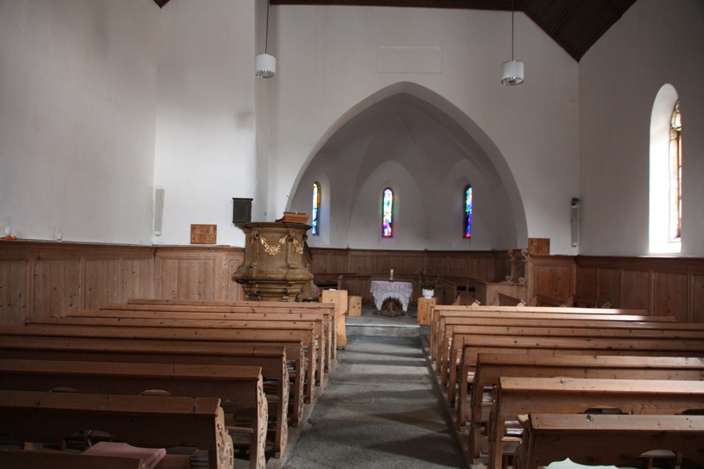 Die reformierte Kirche Giarsun mit ihrer typischen Holztäfelung ist eine der Kulissen im Schellen-Ursli-Film, die meisten Aussenaufnahmen mit den typischen Engadinerhäusern wurden aber in der Nähe, in Sur En bei Ardez gedreht.