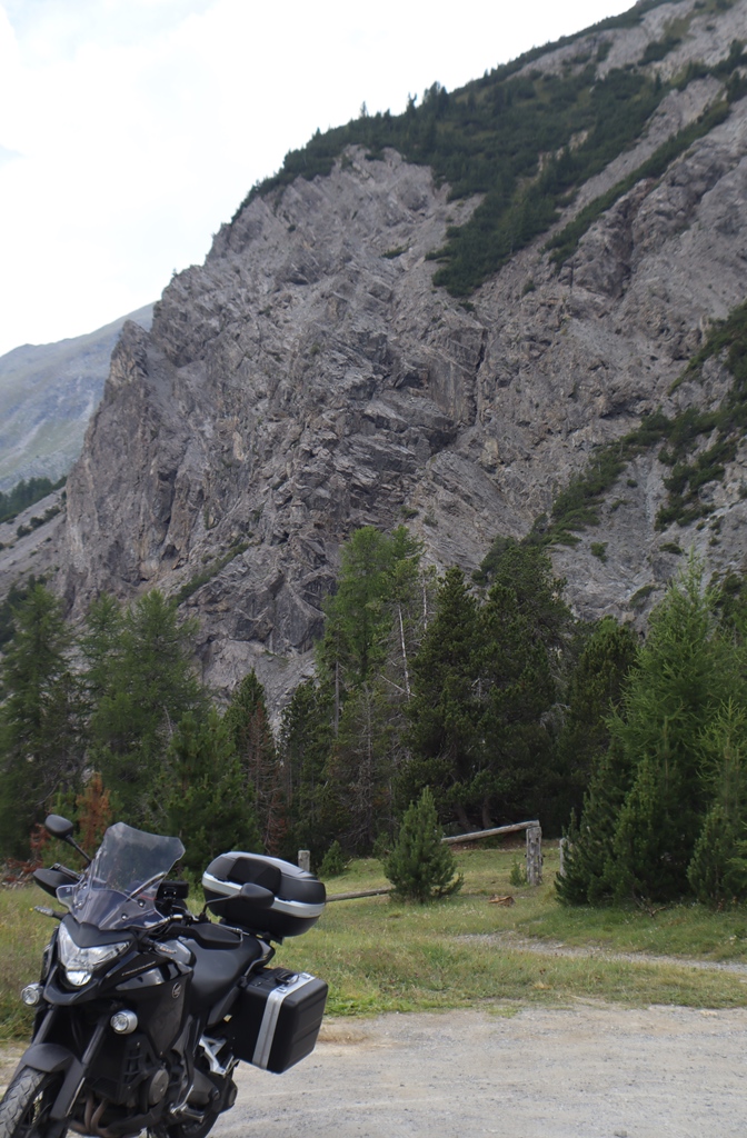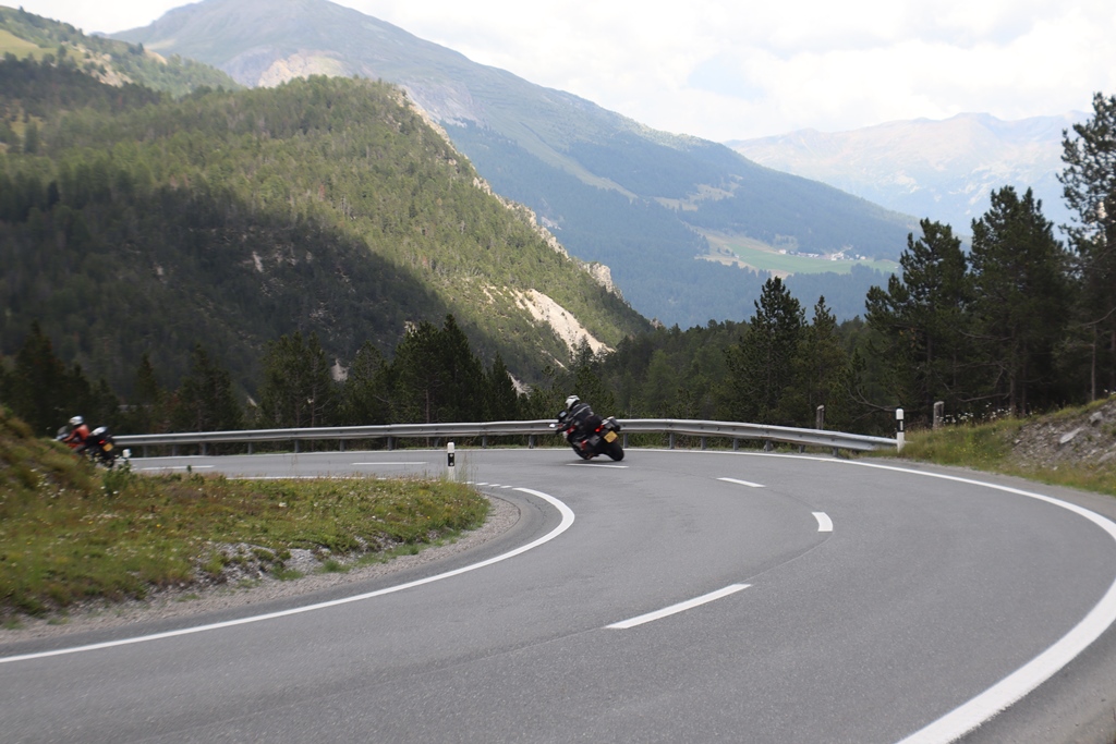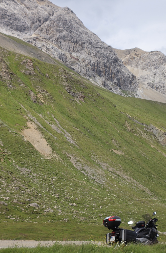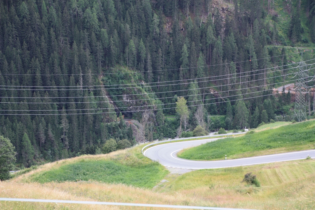 Die Straße hinunter bis Zernez machte definitiv Spaß und so bog ich dort rechts ab Richtung Ofenpass mit seinen 35 km Länge und dem Scheitelpunkt auf 2149 m. Der Himmel nördlich davon wurde immer dunkler und bedrohlicher, aber je weiter ich wieder hinunter kam, desto heller wurde es und darum hoffte ich, noch trocken ins Hotel zu kommen.