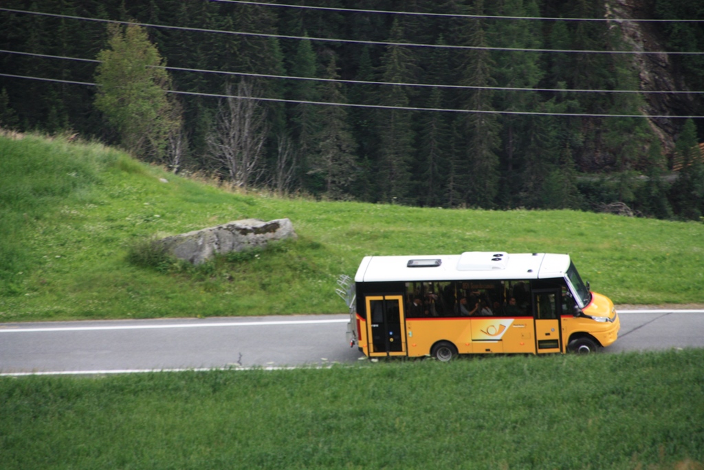 Das schon mehrfach erwähnte, weil überall mit dem Dreiklang Posthorn „Dü-Da-Do“ hör- und sichtbare Postauto in der Bergstrassen-Ausführung begegnet mir zur Abrundung dieser schönen und interessanten Stunden auch noch.