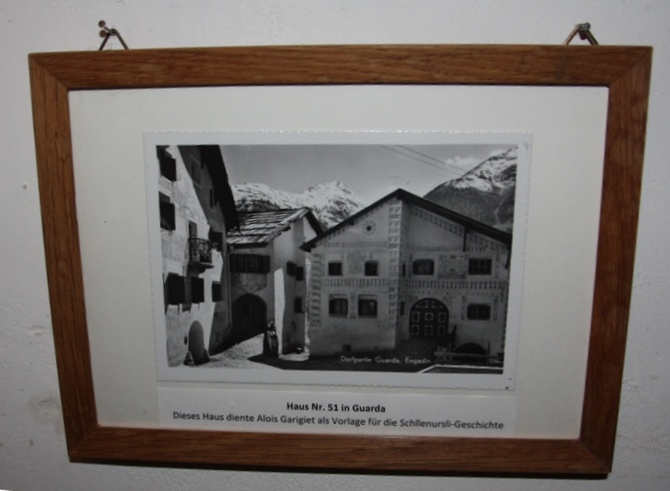 Alois Carigiet hat ein Haus in Guarda als Vorbild für seine Illustrationen genommen und ich habe es bei meinem Besuch unwissentlich fast aus der gleichen Perspektive fotografiert.
