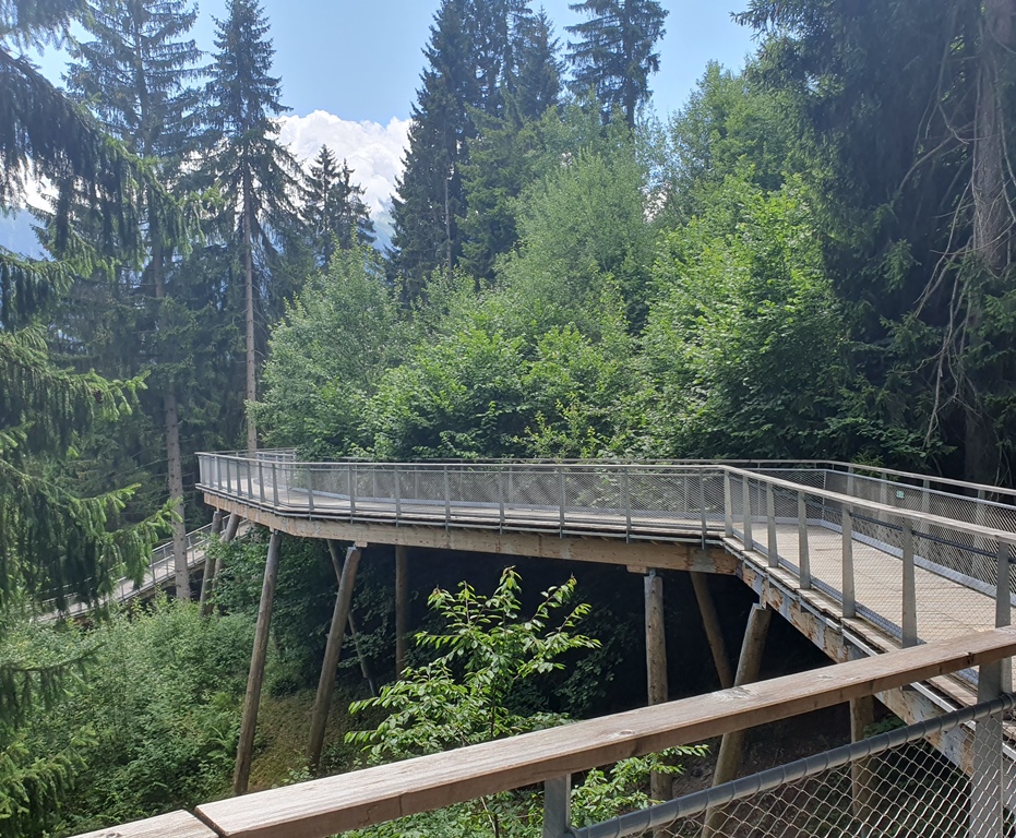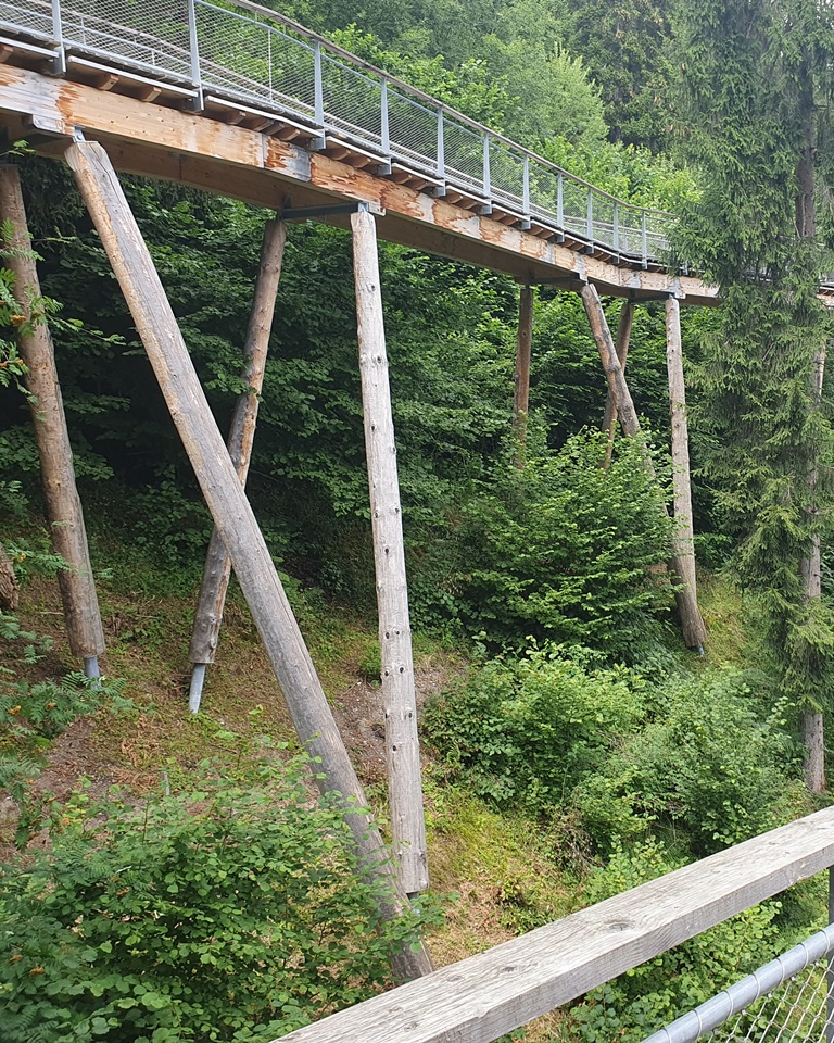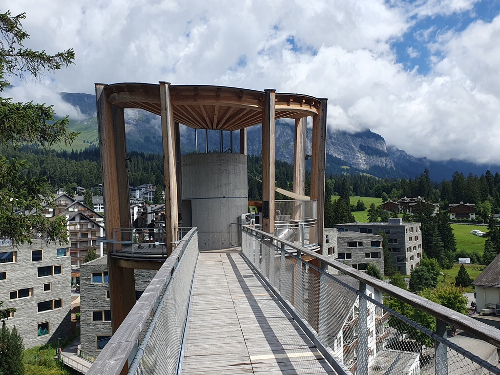 Hoch über der Rheinschlucht liegt das Gebiet Surselva mit dem auch außerhalb der Schweiz bekannten Winzersportort Laax. Fünf Snowparks und die weltgrösste Halfpipe machen den Ort zum Freestyle-Mekka der Alpen. Wir wollten aber im Sommer nur den Baumwipfelweg erkunden.