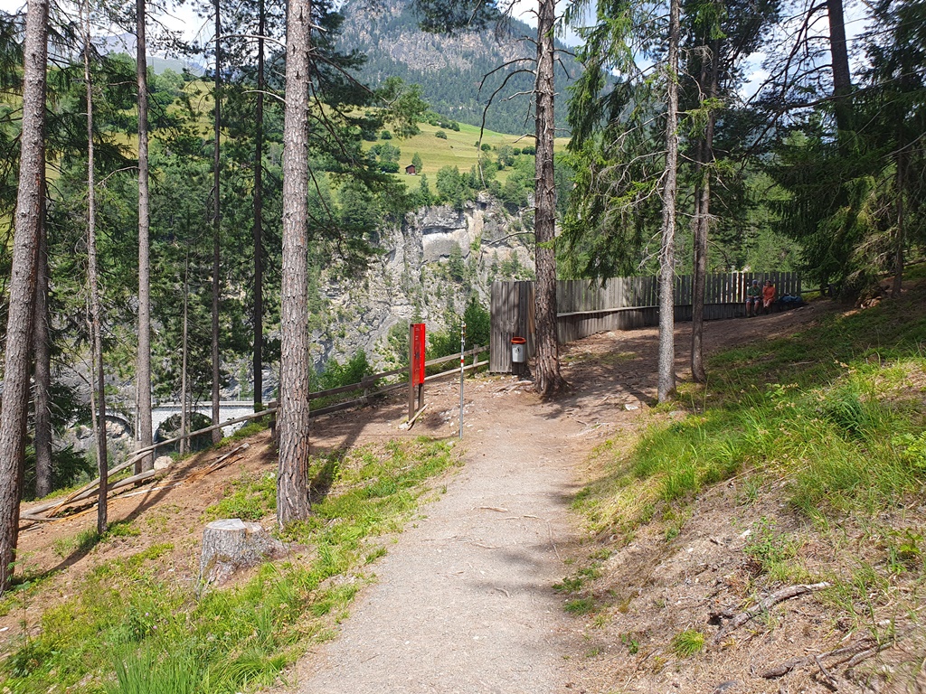 Heute, 13 Jahre später, möchte ich von meinem Quartier in Fürstenau so rasch wie möglich nach Bonaduz, wo ich abbiege und schon in ganz kurzer Zeit bin ich in einer Linkskurve direkt an der Aussichtsplattform Zault mit einem Traumblick in die Rheinschlucht und auf die Schienen der Rhätischen Bahn, wo gerade an der neuen Steinschlaggalerie gebaut wird.