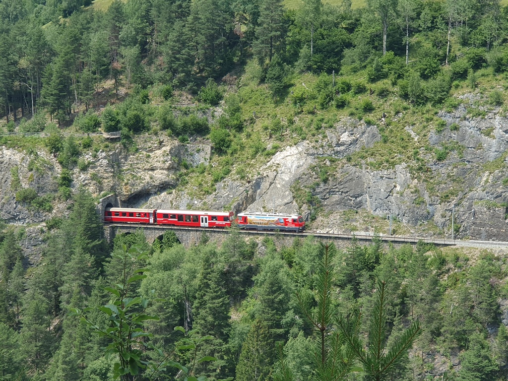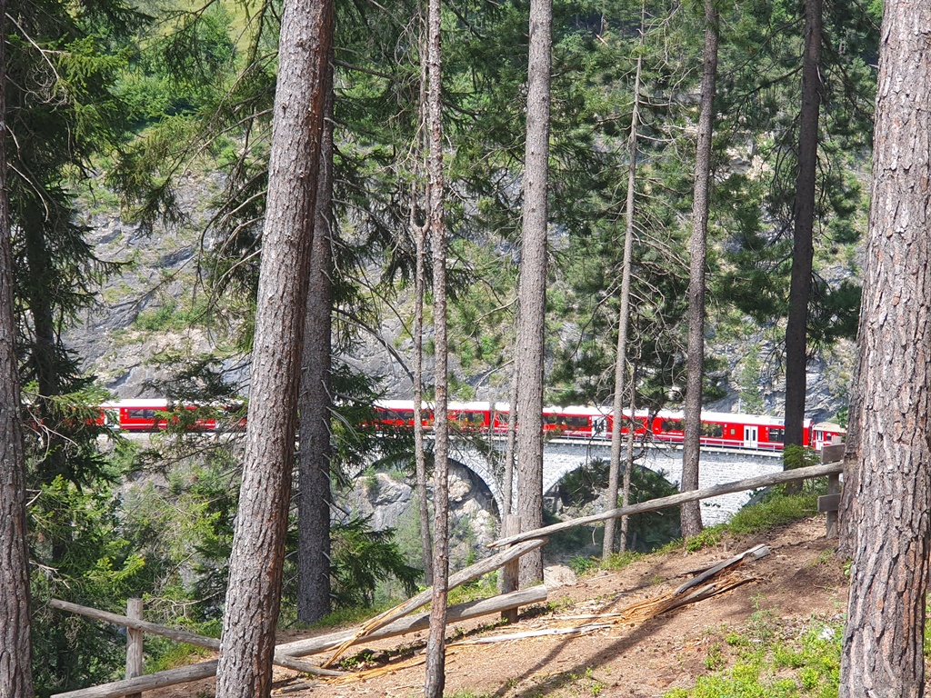 Von der Plattform aus waren die Züge der Albulabahn optimal zu sehen und ich war überrascht, dass ich die Chance hatte, gleich drei davon zu sehen und zu fotografieren.