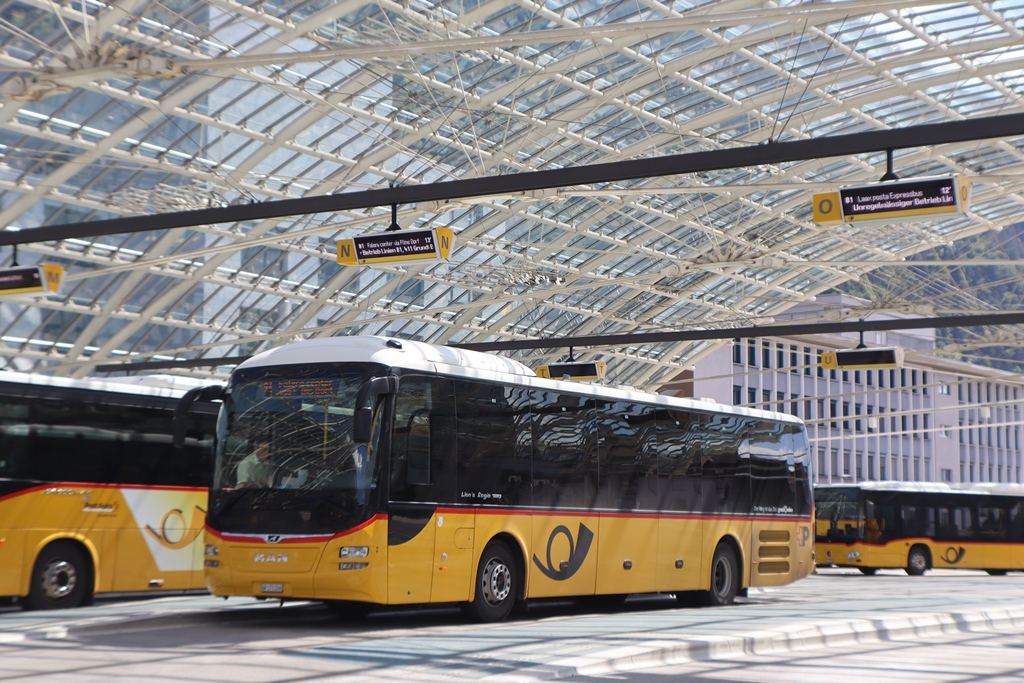 Wir fuhren aber nicht mit dem Motorrad, sondern wie es sich für brave Schweizer gehört, mit dem Zug nach Chur und von dort mit dem Postauto nach Laax. Die Haltestelle war nur wenige Meter vom Einstieg in den Senda dil Dragun (Bündnerromanisch für Drachenweg) beim Actionturm Murschetg entfernt.